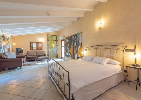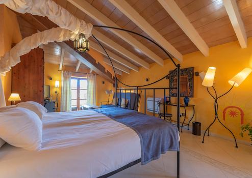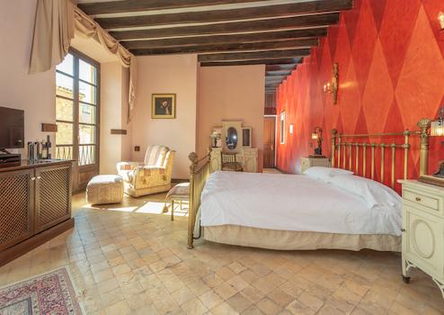 Das Hotel bietet 8 Suiten, die alle sehr individuell gestaltet wurden. In der 1. Etage sind die vier unterschiedlichen Räumlichkeiten mit viel Rücksicht auf die historische Substanz gestaltet worden sind. Hingen die vier weiteren Zimmer in der oberen Etage, auch modernere Stilelemente aufweisen. Alle Zimmer sind sehr geräumig und bieten neben den schönen Schlafmöglichkeiten auch eine komfortable Sitzmöglichkeit. Die Bäder sind großzügig ausgestattet, alle mit Badewanne und Dusche. Eine individuelle Terrasse, oder Balkon steht jedem Zimmer zu. Von hieraus lässt sich die Aussicht über die Ortschaft, beziehungsweise über das Umland genießen.