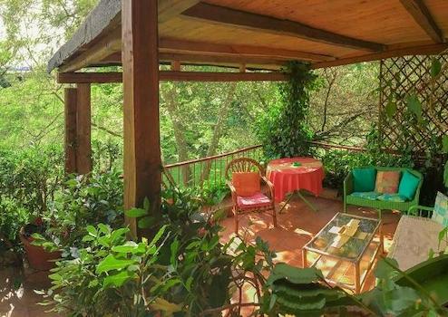 Ein langgezogenes Haus entlang des Flusses Rio San Giovanni derzeit unterteilt in 3 Wohnungen, 2 davon 2 stöckig, liebevoll und äusserst individuell erstellt und ausgestattet, alle mit sehr privater Terrasse zum Fluss hin umgeben von einem