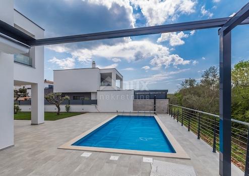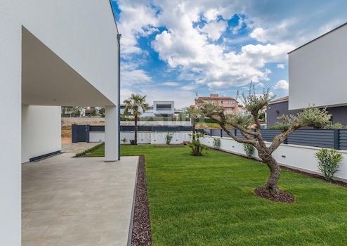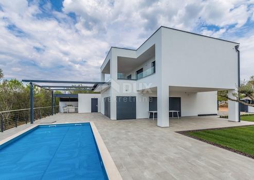 Insel Krk, Luxusvilla mit Pool und Meerblick in der Nähe von Malinska. Sie befindet sich auf einem großen Grundstück mit 570 m2 Garten. Die Villa besteht aus Erdgeschoss und ersten Stock. Das Erdgeschoss verfügt über ein großes Wohnzimmer mit Küche und Essbereich, ein Schlafzimmer, Bad und WC. Das Wohnzimmer hat Zugang zur Terrasse und zum Sonnendeck am Pool. Im Obergeschoss befinden sich drei Schlafzimmer, zwei Badezimmer und eine obere Terrasse von 16 m2 mit herrlichem Meerblick. Diese Villa zeichnet sich durch eine hochwertige Verarbeitung aus, die hochwertige Aluminiumschreinerei, elektrische Fensterläden und Moskitonetze, Fußbodenheizung in allen Zimmern, Klimaanlage in jedem Zimmer und einen angelegten Garten umfasst, der an die Kundenwünsche angepasst werden kann. Dieses Projekt beinhaltet den Bau mehrerer derselben Immobilien in der Nachbarschaft.
