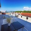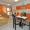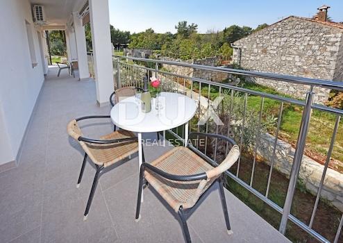 Nicht weit vom schönen Porec entfernt, nur 3 Gehminuten von der Uferpromenade auf der einen Seite und 5 Gehminuten vom ersten Strand auf der anderen Seite entfernt, befindet sich dieses besondere Apartmenthaus mit 6 voll möblierten Wohneinheiten. Das Haus mit einer Gesamtwohnfläche von 414 m2 erstreckt sich über drei Etagen. Es besteht aus insgesamt 6 Wohnungen, von denen bis zu 4 vermietet sind, so dass der zukünftige Eigentümer ein etabliertes Geschäft übernehmen kann. Jedes Apartment verfügt auch über eine eigene Terrasse. Einige dieser Terrassen bieten einen atemberaubend schönen Meerblick. Das Haus hat auch Sonnenkollektoren für die Warmwasserbereitung. Das Haus befindet sich auf einem Grundstück von 584 m2. Auf dem Hof gibt es einen Platz mit einem Grill für den gastronomischen Teil, um die Natur zu genießen. Und um die Atmosphäre für den Schatten im Garten noch besser zu machen, kümmern sich bis zu 23 wunderschöne Olivenbäume darum. Der Hof ist mit schönen Blumen geschmückt und ein Ort zum Entspannen in der Sonne mit Liegestühlen. Der Parkplatz befindet sich neben dem Gebäude. Eine ideale Wahl für alle, die die Ruhe genießen möchten und die den schönen Meerblick genießen möchten.