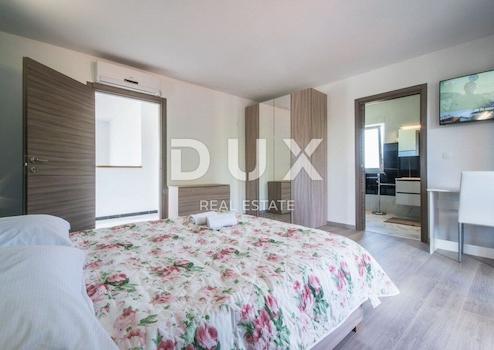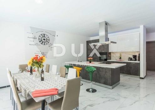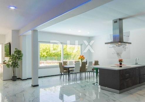 Istrien, Labin - Neue Villa mit Pool und angelegtem Garten, Fläche 270 m2, bestehend aus zwei Gebäuden und einem Swimmingpool. Die Villa verfügt über ein schönes und offenes Wohnzimmer mit Zugang zur Terrasse, eine gut ausgestattete Küche und ein Esszimmer. Insgesamt 4 Schlafzimmer und 4 Badezimmer sowie eine separate Toilette. Das Nebengebäude besteht aus einer Sommerküche und einem Badezimmer. Der angelegte und eingezäunte Garten von 1109 m2 ist groß genug. Der Pool befindet sich vor der Villa. Vor dem Nebengebäude befindet sich ein Kinderspielplatz. Überdachte Parkplätze für 3 Autos wurden eingerichtet. Diese Villa wurde im Jahr 2020 erbaut und ist eine vorgefertigte Bauart mit hervorragenden Dämmeigenschaften des Gebäudes. Der gesamte Innenraum ist klimatisiert und Details wurden bei der Dekoration des Innen- und Außenbereichs berücksichtigt. Die Villa steht voll möbliert und gebrauchsfertig zum Verkauf. Es befindet sich in einer wunderschönen Lage, die für das Familienleben geeignet ist. Die Villa ist auch als Investition interessant und kann durch die Vermietung der Anlage auf dem Ferienhausmarkt eine Kapitalrendite erzielen. Die Villa ist mit 5 Sternen kategorisiert und wird während der Touristensaison zur Miete genutzt.