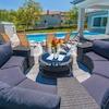 In der Nähe der Stadt, etwa 6 km westlich des Zentrums von Labin und etwa 15 Autominuten von Rabac entfernt, befindet sich diese wunderschöne Villa. Die Stadt Labin wurde auf einem 320 Meter hohen Hügel gegründet - dem Ort der römischen Siedlung Albona, deren Name erstmals 285 n. Chr. Erwähnt wurde. In der Vergangenheit war dieses Juwel für seine 400 Jahre alte Bergbautätigkeit bekannt, heute ist es eines der Kultur- und Verwaltungszentren in Istrien. Die charmante Stadt kombiniert kulturelle und historische Denkmäler und den Reichtum der Architektur bei verschiedenen kulturellen Veranstaltungen. Rabac ist besonders attraktiv wegen seiner niedrigen weißen Kiesstrände. Als Bestätigung des sauberen Meeres und der erhaltenen Strände erhielt Rabac 2002 den ECO-Stempel "Blaue Flagge". Ein paar Kilometer von Rabac entfernt, in einem kleinen, von viel Grün umgebenen Dorf, befindet sich diese Ferienvilla mit Pool.