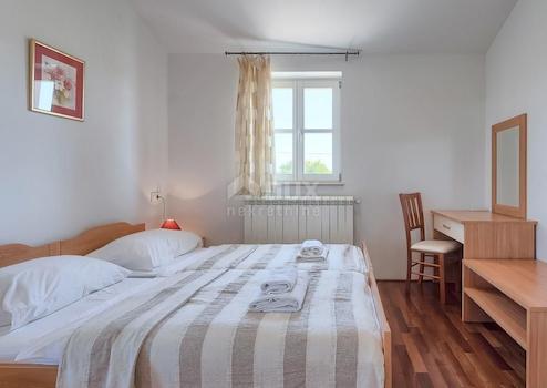 Ein paar Autominuten vom Zentrum von Pula entfernt befindet sich dieses schöne Haus, das in einem hohen Standard und traditionellem Stil gebaut wurde. Das Haus von 160m2 erstreckt sich über zwei Etagen, Erdgeschoss und ersten Stock. Es besteht aus drei Schlafzimmern mit jeweils eigenem Bad, Flur, Wohnzimmer, Küche und Esszimmer. Die Klimaanlage dient zum Heizen und Kühlen und die Gaszentralheizung ist im gesamten Gebäude installiert. Auf dem Dach sind Sonnenkollektoren für heißes Sanitärwasser installiert. Das Haus ist komplett mit modernen Möbeln eingerichtet und steht als solches zum Verkauf. Auf einem umzäunten Garten von 770m2 gibt es genügend Platz zum Abstellen von zwei Autos. Das Haus ist mit einem Alarm und Überwachungskameras ausgestattet. Das Anwesen ist ideal für einen größeren Familienurlaub oder als Investition in den Tourismus.