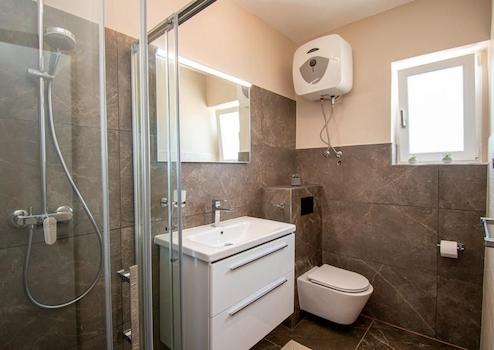 Das Haus besteht aus einer luxuriösen Maisonette-Wohnung und 3 Wohnungen. Im Erdgeschoss befindet sich ein Studio-Apartment von 35 m2. Maisonette-Wohnung erstreckt sich in einem Teil des Hauses und besteht aus einem Wohnzimmer mit Zugang zum Garten, Küche und Bad im Erdgeschoss und 3 Schlafzimmern, Bad und Abstellraum im 1. Stock. Im zweiten Teil des Hauses im Erdgeschoss und im ersten Stock befinden sich zwei weitere Apartments mit einem Schlafzimmer von 40 m2. Schöner Garten mit Grill und Sitzgarnitur, umgeben von mediterranen Blumen. Nur 500 m vom Meer entfernt ist diese Immobilie perfekt für die touristische Vermietung. GELEGENHEIT!!
