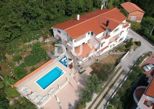 Das Haus ist nach Süden ausgerichtet mit einem wunderschönen Panoramablick auf die gesamte Kvarner Bucht und Inseln! Die Villa besteht aus 2 Teilen. Der erste Teil, in dem sich 4 Wohnungen und ein Garagenplatz befinden, und der Teil, in dem sich 2 große Wohnungen mit Pool befinden. Im ersten Teil befinden sich 2 größere Wohnungen von ca. 100m2 (Wohnzimmer, Küche, Esszimmer, 2 Schlafzimmer, Tank und Badezimmer) und 2 kleinere Wohnungen von 50 m2 (Wohnzimmer, Küche, 1 Schlafzimmer, Garderobe und Badezimmer). Die Garage im Erdgeschoss ist geräumig, bietet Platz für mindestens 4 Autos und mehrere Motorräder und hat eine Deckenhöhe von über 3,5m2. Die Garage verfügt über eine Toilette und mehrere Räume, die als Lager für verschiedene Dinge dienen können. Im zweiten Teil der Villa befinden sich 2 größere Wohnungen und Waschküchen im Erdgeschoss, Gesamtfläche von 100m2 die auch in 1 größere oder 2 kleinere Wohnungen umgewandelt werden können oder für Fitnessraum, Sauna, Kinderspielzimmer genutzt werden können und dergleichen. Große Wohnung im 1. Stock besteht aus Wohnzimmer, Esszimmer, Küche, 2 Abstellräumen, 4 Schlafzimmern und einem Badezimmer. Die Wohnung im 2. Stock besteht aus einem Wohnzimmer, Esszimmer, Küche, Abstellraum, 2 Schlafzimmern und einem Badezimmer. Beide Wohnungen in diesem Teil verfügen über große überdachte Terrassen mit herrlichem Meer- und Poolblick. GARTEN: Der Garten wird seit vielen Jahren angelegt und ständig gepflegt. Es enthält einen Kamin und eine unterirdische Zisterne namens Regenwassersammeltanks mit einem Volumen von 30m3. Im Garten befindet sich ein Swimmingpool mit schönem Blick auf das Meer, die Kvarner Bucht und die Inseln. Derzeit haben die Besitzer auch einen Garten, in dem sie einige Gemüsesorten anbauen, und auf dem Hof wachsen mehrere Obstbäume. Vor der Villa befinden sich 6 markierte Parkplätze. Sauberes und ordentliches Anwesen. Profitabel während der gesamten Sommersaison. Sicherlich eine schöne Immobilie für ein luxuriöses Familienleben, aber auch als Investition in Form von Tourismus geeignet. EINZIGARTIGE IMMOBILIE IN EINER GROSSARTIGEN LAGE, DIE AUFMERKSAM WERT IST !!!
