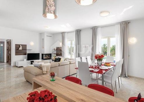 Dank der reichen Geschichte, deren Spuren seit der Antike zu finden sind, sehr günstiges Klima und außergewöhnliche natürliche Schönheit in einer einzigartigen Kombination aus grünem Interieur und blauer Küste der Adria, Vodnjan und seiner Die Umgebung wird Sie mit ihrem Charme, ihrem kulturellen Erbe und einer Vielzahl von Aktivitäten begeistern. Vodnjan ist ein erkennbares istrisches Juwel, wenn es um erstklassige gastronomische Erlebnisse geht. Stolz ist er aber auch auf seine geschickt sanierten alten Steinhäuser. Villen in Vodnjan sind mit zusätzlichen Einrichtungen wie Swimmingpools und phantasievoll angelegten Gärten bereichert und garantieren somit einen qualitativ hochwertigen Urlaub. Das Mieten von Villen in Vodnjan wird immer beliebter, um sich während eines Besuchs in dieser Gegend zu entspannen. Genießen Sie alle Vorzüge der Früchte des Landes der roten Erde und erleben Sie unvergessliche Momente in unseren Villen. In abgeschiedener und ruhiger Lage in Vodnjan befindet sich eine wunderschöne Luxusvilla mit einer Gesamtgröße von 460 m2, gelegen auf einem Grundstück von 5800 m2. Die Villa wurde 2018 gebaut und beim Bau wurden die hochwertigsten Materialien verwendet. Diese Schönheit besteht aus 2 separaten Wohnungen, eine im Erdgeschoss und die andere im ersten Stock. Beide Wohnungen verfügen über einen eigenen separaten Eingang. Im Erdgeschoss der Villa befindet sich eine Wohnung mit Wohnzimmer und Küche, Speisekammer, Bad, WC, Schlafzimmer, Fitnessraum und Sauna. Im Obergeschoss befindet sich ein großes Wohnzimmer, 3 Schlafzimmer, 3 Bäder und zwei Terrassen. Das Haus als solches verfügt über insgesamt zwei Wohnzimmer, eine Küche, vier Schlafzimmer, fünf Badezimmer, eine Toilette, einen separaten Bereich mit Fitnessraum und Sauna, drei Vorratskammern und eine separate Taverne. Im Hof befindet sich ein großer Pool von 35 m2 und direkt daneben eine Taverne mit Kamin. Was diese Villa sehr interessant macht, ist die Tatsache, dass sie über 5800 m2 Garten verfügt, auf dem sich ein kleiner Kinderpark, zwei Garagen, ein Grill und ein Teil des Landes mit gepflanzten 120 Olivenbäumen befinden. Die Villa hat auch einen Olivenhain mit 120 Olivenbäumen, die 20 Jahre alt sind. Die Heizung im Haus erfolgt über Klimaanlagen, und im Haus ist eine Fußbodenheizung installiert, die sich in allen Räumen außer den Schlafzimmern befindet. Auf dem Dach des Hauses befinden sich Sonnenkollektoren und die Villa hat zwei separate Eingänge. Hintereingang mit 2 Autos und am Vordereingang mit Platz für 4 weitere Autos + zwei Garagen. Angesichts der Bauqualität, der Lage, in der sich diese Villa befindet, der Größe des Gebäudes und des Gartens, der Einrichtungen, die die Villa bietet, des riesigen Olivenhains, der zu dieser Immobilie gehört, ist diese Villa eine einzigartige Gelegenheit für Menschen, die ihre Liebe lieben eigene Ruhe und Natur. Die Villa kann privat genutzt, aber auch vermietet werden, da sie kategorisiert ist und bisher an Touristen vermietet wurde. Die Lage bietet Ruhe und Frieden und ist dennoch nah an allen notwendigen Grundeinrichtungen. Bei Kaufinteresse oder weiteren Informationen rufen Sie uns unter der Handynummer 098 9370 2020 an.