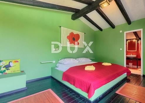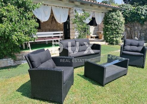 Nur 250 m vom Meer entfernt steht ein schönes Anwesen mit einem Haupthaus und drei Bungalows zum Verkauf. Im Haupthaus befinden sich Küche, Esszimmer und Wohnzimmer mit Kamin und Zentralheizung mit Heizöl. Außerdem gibt es ein weiteres Schlafzimmer mit Bad und separatem WC. Das Wohnzimmer öffnet sich auf eine überdachte Sommerterrasse, die sich ideal für einen Morgenkaffee oder ein Glas Wein am Abend in guter Gesellschaft eignet. Auf einer Fläche von 1580 m2 befinden sich drei weitere Bungalows aus Stein im istrischen Stil, die jedem Gast Privatsphäre bieten. Im zentralen Teil befindet sich ein Schwimmbad von 25m2. Im Hof im Teil unter den alten Pinien gibt es einen Grill, wo Sie leckere Mahlzeiten für Familie und Freunde zubereiten können. Der Rasen rund um das Haus hat eine automatische Bewässerung. Im Hof gibt es einen privaten Parkplatz für 3 Autos. Sorgfältig ausgewähltes Grün verleiht eine besondere Atmosphäre und bietet absolute Privatsphäre. Alle Einrichtungen befinden sich in der Nähe. Verpassen Sie nicht diese einmalige Gelegenheit, dieses märchenhafte Anwesen zu Ihrem eigenen zu machen! Die Immobilie hat eine Kategorisierung, wenn Sie sich also noch im Tourismus engagieren möchten, ist dies eine ideale Gelegenheit, um die Investition zurückzugeben. Die Immobilie ist Ihre Aufmerksamkeit wert!