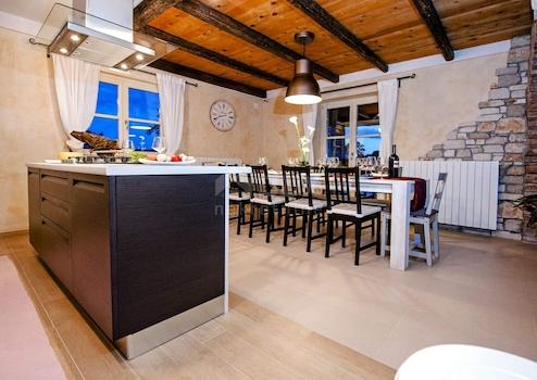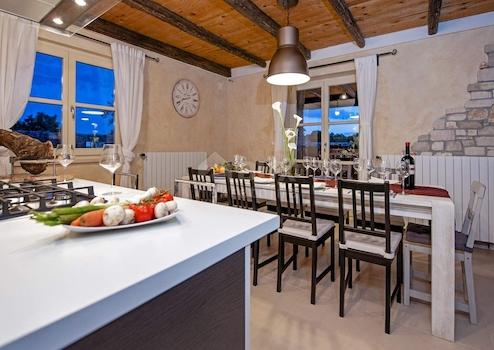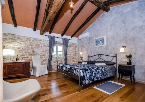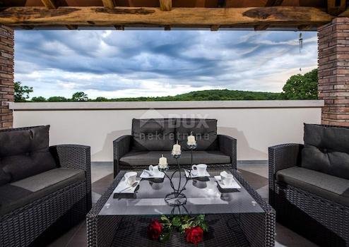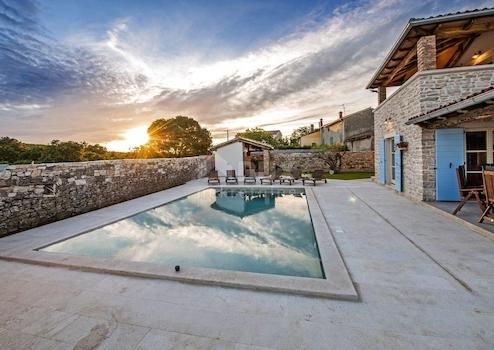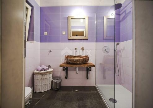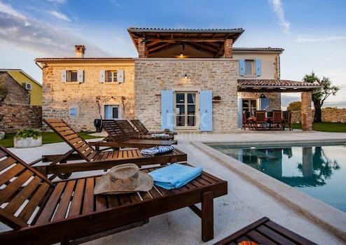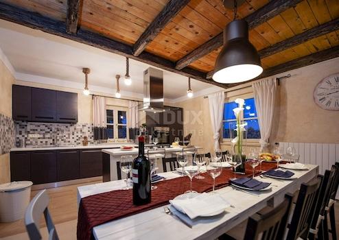 Nur wenige Autominuten vom Zentrum von Rovinj in Krmed entfernt wurde diese wunderschöne, einzigartige Steinschönheit erbaut. Diese exklusive Villa, umgeben von unberührter Natur, wurde (im Jahr 2016) mit einer Fläche von 320 m² auf zwei Etagen erbaut. Das Erdgeschoss verfügt über eine voll ausgestattete und möblierte Küche mit Essbereich und geräumigem Wohnzimmer, ein Schlafzimmer mit Kamin, zwei Badezimmer und eine Terrasse mit Tisch und Stühlen. Im ersten Stock befinden sich 3 Schlafzimmer, jedes mit eigenem Bad und einer Terrasse mit Sitzmöbeln. Es ist voll klimatisiert und in der gesamten Villa können Sie die sorgfältig ausgewählten istrischen Details sehen, die es schmücken. Im äußeren Teil gibt es eine Sommerküche mit Grill und Toilette, einen 40 m² großen Swimmingpool mit eingebautem Hydromassagesystem, ein Sonnendeck und einen geräumigen und sorgfältig angelegten Garten von 600 m². Die Unterkunft verfügt über eine vollständige Dokumentation. Eigentum 1/1, keine Belastungen.
