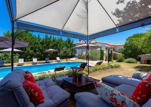 Die Villa verfügt über 7 Schlafzimmer, 6 Badezimmer, 2 Wohnzimmer, Innen- und Außenküche, Weinkeller, Swimmingpool, urbanisierten Garten. Energiezertifikat A. Diese luxuriöse Villa befindet sich im Herzen Istriens in einer kleinen Touristenstadt Rakalj, 25 km in der Nähe der historischen Stadt Pula. Das Anwesen der Villa erstreckt sich über 4136 Quadratmeter mit einem Swimmingpool.