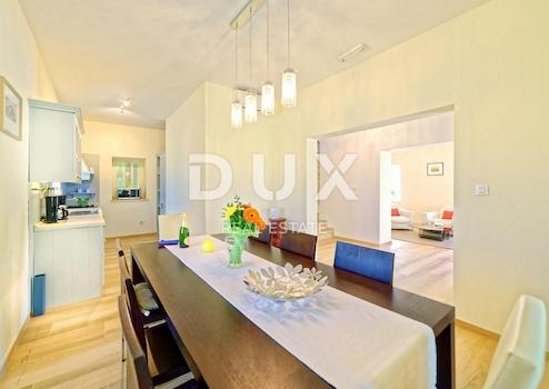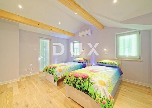 Die erste Erwähnung der Stadt Motovun findet sich in einem Dokument aus dem Jahr 804, und nach einem Jahrhundert deutscher Herrschaft und des Patriarchen von Aquileia bittete Motovun 1278 Venedig, sie unter seiner Herrschaft zu akzeptieren, unter der sie bis 1797 blieb. Während der österreichisch-ungarischen Monarchie wurde diese Schönheit Mitte des 19. Jahrhunderts erbaut und 2015 vollständig rekonstruiert. Die geräumige Villa von 260 m2 erstreckt sich über drei Etagen, das Erdgeschoss, den ersten Stock und den Dachboden. Im Erdgeschoss befinden sich ein Wohnzimmer mit Küche und Essbereich, eine 5 m2 große Weinhandlung und eine Toilette. Im ersten Stock gibt es einen Abstellraum, der auch eine Waschküche ist, und zwei Schlafzimmer, jedes mit eigenem Bad und Terrasse mit herrlichem Blick auf Motovun. Im zweiten Stock befinden sich zwei Schlafzimmer mit eigenem Bad und Terrasse mit Blick auf das atemberaubende Motovun und die umliegenden Weinberge. Das Haus verfügt über eine zentrale Solarheizung und jedes Schlafzimmer verfügt über eine eigene Daikin-Klimaanlage. Die Böden sind aus hochwertiger italienischer Keramik und Eichenparkett. Die Fenster sind aus Holz. Die Villa hat eine sehr gute Isolierung aus 8 cm Styropor, die an der Innenseite der Wand aus 60 cm breitem Stein ausgekleidet ist, was eine erhebliche Energieeinsparung für die Raumheizung darstellt. Im Erdgeschoss befindet sich auch ein Maschinenraum, in dem sich ein Kessel mit einem Fassungsvermögen von 1000 Litern Warmwasser befindet, der durch Sonnenkollektoren beheizt wird, und die erste Phase zum Erhitzen des Poolwassers wurde durchgeführt. Auf dem eingezäunten Hof von 998 m² befindet sich der 40 m² große Überlaufpool, der mit der Pebble Tec-Technik mit römischen Treppen hergestellt wurde. Neben dem Pool befindet sich ein Haus mit Poolausstattung, Sauna und Bad, eine überdachte Terrasse mit Gartenmöbeln und ein Steingrill. Im Garten stehen vier Parkplätze zur Verfügung. Die Villa ist komplett mit modernen Möbeln berühmter italienischer Hersteller eingerichtet. Diese Unterkunft befindet sich in einer abgelegenen Gegend, umgeben von Weinbergen und viel Grün. Sie ist ideal für diejenigen, die einen Urlaub in der Natur und Ruhe abseits der Massen der Stadt suchen.