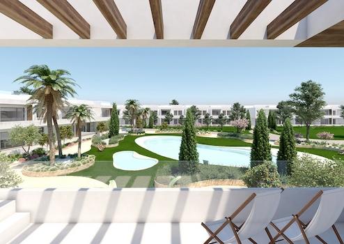 Moderne Obergeschoss-Wohnungen mit 2 Schlafzimmern, 2 Bädern, Dachterrasse, Klimaanlage, Alarmanlage und Gemeinschaftspool nur 250 m vom Meer