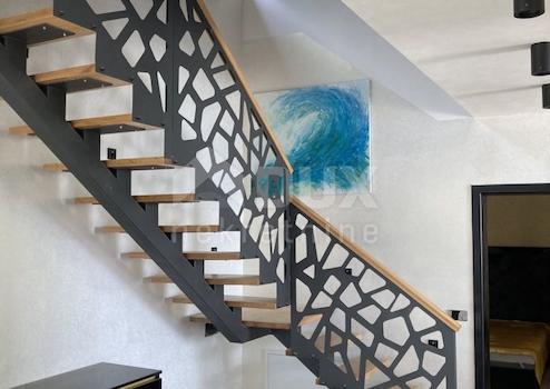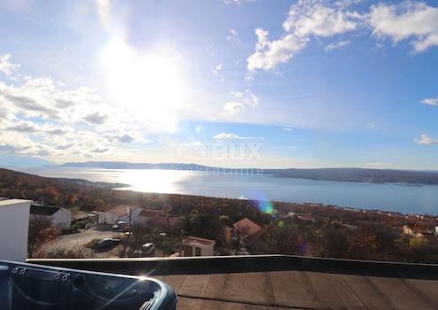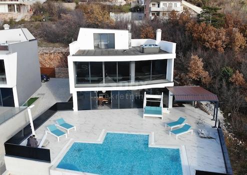 Wir bieten eine wunderschöne moderne Villa in toller Lage oberhalb der Stadt Crikvenica. Die Villa hat einen spektakulären Blick auf das Meer und die Insel Krk. Es besteht aus einer Eingangshalle im Erdgeschoss, die auch ein Wohnzimmer mit Essbereich und Küche sowie ein Schlafzimmer und ein Badezimmer beherbergt. Im Obergeschoss befinden sich drei Schlafzimmer mit jeweils eigenem Bad und eine Dachterrasse mit Whirlpool und Sonnendeck. Es ist komplett ausgestattet und mit Designermöbeln eingerichtet und wird auch als solche verkauft. Zur weiteren Ausstattung gehören Klimaanlage in jedem Zimmer, Fußbodenheizung, Wärmepumpen und ein zentraler Staubsauger. Die Villa ist mit der höchsten Energieklasse kategorisiert und der Garten umfasst 3 Parkplätze und einen Infinity-Pool 9x5x1,5.