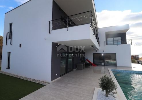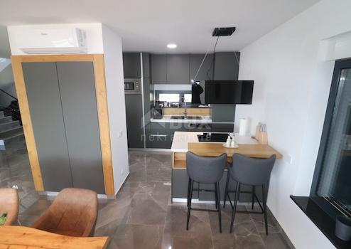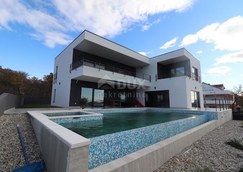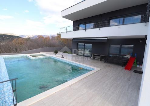 Wir haben einen exklusiven und luxuriösen Neubau mit Panoramablick auf das Meer zum Verkauf erhalten. Die Villa liegt oberhalb von Crikvenica, 800 Meter Luftlinie vom Meer und ca. 5 Autominuten vom Zentrum entfernt. Es befindet sich auch in einer wunderschönen Lage in einem Viertel mit weniger privaten Einfamilienhäusern und Luxusvillen. Es besteht aus einem Erdgeschoss, in dem sich Küche und Wohnzimmer imOpen Space Konzept befinden, Bad, Sauna, Schlafzimmer mit begehbarem Kleiderschrank, Terrasse und Pool. Die Terrasse und der Pool sind von allen Zimmern außer dem Badezimmer zugänglich. Eine Innentreppe führt in den ersten Stock, wo sich ein großes Wohnzimmer mit Billardtisch und drei Schlafzimmer mit jeweils eigenem Bad befinden. Die beiden südlichen Zimmer haben Zugang zu einem geräumigen Balkon mit Blick von der Krk-Brücke nach Rab. Die Villa hat die höchste Qualität und kann eine ausgezeichnete Investition für die Miete mit einer großen Rendite sein. Der Garten umfasst einen Swimmingpool, einen Spielplatz mit Kunstrasen und eine Garage für zwei Fahrzeuge mit Zentralheizung. Eine seltene Immobilie, die Ihre Aufmerksamkeit verdient. Rufen Sie den Agenten unter +385 98 1377003 an, um weitere Informationen zu erhalten.