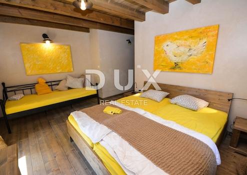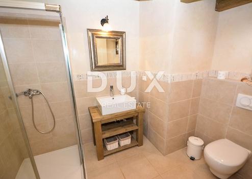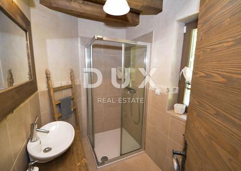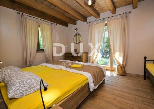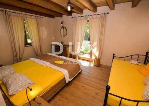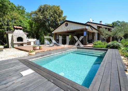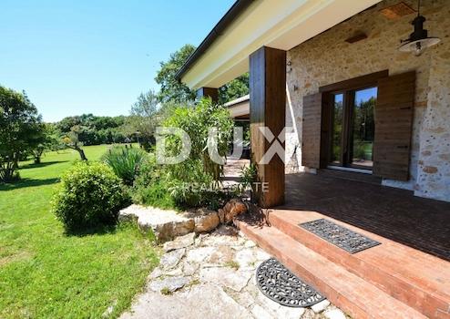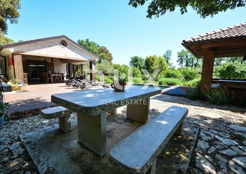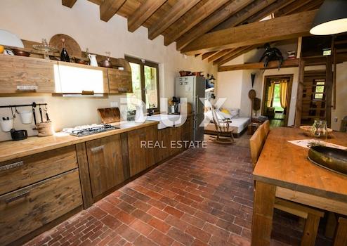 Rovinj liegt an der Westküste Istriens und ist heute eines der am weitesten entwickelten Touristenziele in Kroatien. Rovinj, auch bekannt als eine der malerischsten und romantischsten Städte im Mittelmeerraum, zieht seit Jahrzehnten eine große Anzahl von Touristen an, und die meisten von ihnen kehren Jahr für Jahr treu zurück. In der Nähe von Rovinj befindet sich eine wunderschöne Villa mit Pool in einzigartiger Lage. Es befindet sich auf einer Fläche von 4369 m2, gefüllt mit aromatischen mediterranen Pflanzen und umgeben von Olivenbäumen. Die Villa verfügt über eine autarke Wasserquelle und eine Solaranlage zur Stromerzeugung und Warmwasserbereitung. Das Erdgeschoss der Villa verfügt über ein wunderschön eingerichtetes Wohn- und Esszimmer und eine gut ausgestattete Küche mit rustikalen Elementen. Es gibt auch zwei Schlafzimmer im Erdgeschoss, jedes mit eigenem Bad, während die Galerie im Obergeschoss ein weiteres Schlafzimmer hat. Auf der überdachten Terrasse befindet sich eine Außenküche. Der Pool ist von einer Holzterrasse und mediterraner Vegetation umgeben und ist der perfekte Ort, um die Vorzüge dieser ruhigen Lage zu genießen. Es gibt auch einen Beachvolleyballplatz, Basketball, Badminton, Kleinfeldfußball und Tischtennis.