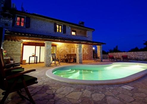 Barban ist auch stolz auf seine gut erhaltenen barocken und gotischen architektonischen Gebäude, Fresken und glagolitischen Inschriften. Es ist ein Ort, an dem in letzter Zeit immer mehr Stein- und moderne Villen gebaut werden, und es zeichnet sich durch viele schöne Aussichtspunkte nach allen Seiten aus. Diese charmante traditionelle Steinvilla befindet sich in der Nähe von Barban. Es wurde mit hochwertigen Materialien in vielen Stilrichtungen restauriert und viele Originalelemente sind erhalten geblieben. Die Villa hat zwei Etagen. Das Erdgeschoss verfügt über ein Wohnzimmer, eine Küche, ein Esszimmer und ein Badezimmer. Im Obergeschoss befinden sich drei Schlafzimmer und ein Badezimmer. Alle Schlafzimmer sind komfortabel und klimatisiert. Die Villa verfügt über Fußbodenheizung, Fotospannung und LED-Beleuchtung. Diese Villa ist mit dem Öko-Zertifikat der Gespanschaft Istrien geschmückt. Die Küche öffnet sich auf eine überdachte Terrasse mit Grill. Die Steinmauern, die den Hof umschließen, sorgen für absolute Privatsphäre. Im Hof befindet sich ein Swimmingpool von 24 m2. Die Villa liegt am Rande des Dorfes in einer entspannten, natürlichen Umgebung, ideal für Familienleben, Ruhe und Entspannung.