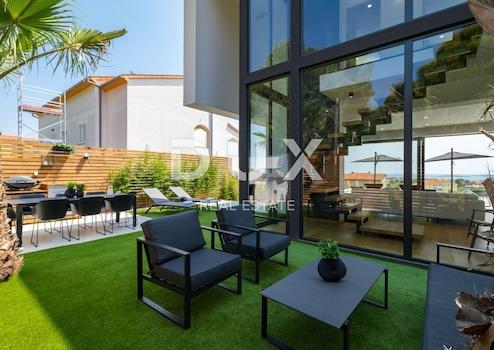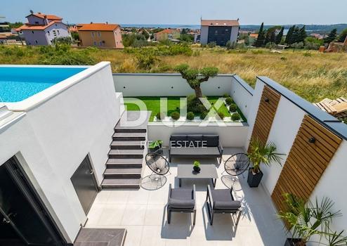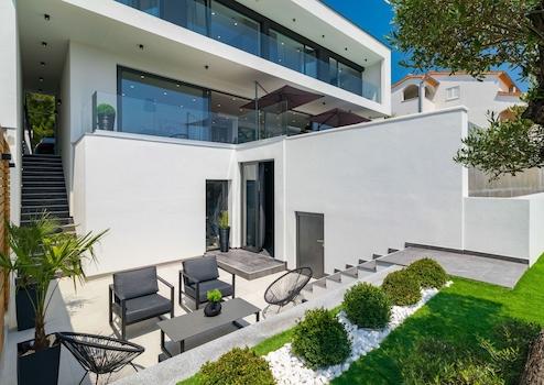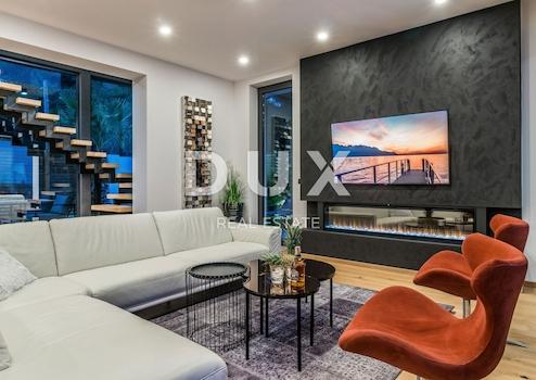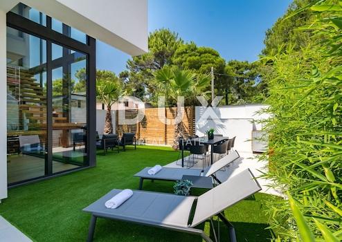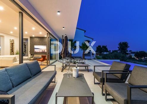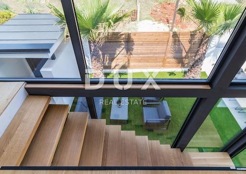 Exotische Villa mit Panoramablick auf das Meer befindet sich in Medulin in einer der ruhigeren Lagen, nicht weit vom Wald entfernt. Die Gesamtwohnfläche der exotischen Schönheit beträgt 400 m2 und befindet sich auf einem Grundstück von 496 m2, das maximal optimal genutzt wird. Die Villa ist nach Weltstandards eingerichtet und mit großzügigen Glaswänden geschmückt, die Meerblick von fast allen Zimmern der Villa bieten. Beim Betreten der Villa werden wir von einem geräumigen Wohnzimmer und einer Küche mit direktem Zugang zum Infinity-Pool und freiem Meerblick begrüßt, was das Kaffeetrinken in dieser exotischen Schönheit noch spezieller macht. Treppen führen in den ersten Stock, wo sich vier geräumige Schlafzimmer befinden, jedes mit eigenem Bad und Fernseher und Meerblick. Der besondere Teil des Hauses gehörte der Wellness-Ecke, die wir über die Treppe vom Erdgeschoss erreichen, wo uns ein wahres Stück Paradies erwartet. Der Wellnessbereich besteht aus einem industriellen Whirlpool (Ozonfiltration), einer finnischen Sauna, einem Badezimmer und einer Startzone mit einem großen Fernseher mit allen Annehmlichkeiten, einschließlich Netflix. Die Dekoration und Beleuchtung des gesamten Wellnessbereichs wurde sorgfältig ausgewählt und die Sauna ist so eingerichtet, dass Sie durch die Glaswand einen Blick auf den Whirlpool haben. Im Garten gibt es einen schönen Infinity-Pool mit direktem Meerblick und eine Liegezone mit Palmen für ungestörtes Genießen an sonnigen Tagen. Zusätzlich zu der oben genannten Villa verfügt über einen Keller als Abstellraum. Die Lage und die Position machen diese Villa zu etwas ganz Besonderem, wenn man bedenkt, dass die Villa von fast allen Zimmern aus Meerblick hat und Sie allein durch die Dekoration des Innen- und Außenbereichs dieses schöne und besondere Anwesen gar nicht mehr verlassen möchten.