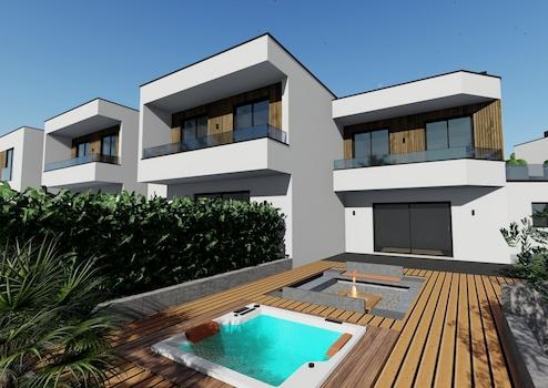 Wir bieten wunderschöne SMART HOME Villen im Bau mit Meerblick. Das Hotel liegt in einem Elite-Teil von Porec, ganz in der Nähe des Meeres, mit einem Meerblick, den niemand überdecken kann. Nicht weit vom Zentrum von Porec mit allen kommerziellen Einrichtungen entfernt. In der Nähe befinden sich Promenaden am Meer, schöne Strände, ideale Lage für Fans von sportlichen Aktivitäten (Tennisplätze, Radwege). Die gesamte Villa verfügt über eine Fußbodenheizung über VAILLANT-Wärmepumpen sowie Klimaanlagen in jedem Raum zur Kühlung. Die Böden sind mit hochwertigem HARO Deutschland Parkett ausgelegt. Keramik ist italienisches Porzellan. Die Innenschreinerei ist 2,30 m hoch mit 3D-Schloss und Magnetverschluss. Die erwartete Energieklasse ist A, Wärmedämmung aus Steinwolle 10cm. Der zukünftige Besitzer kann die Farbe von Keramik und Parkett wählen. Es ist möglich, die Innenausstattung der Villa zu arrangieren.