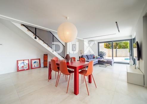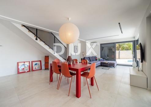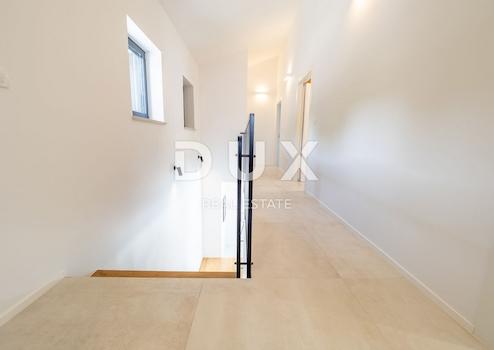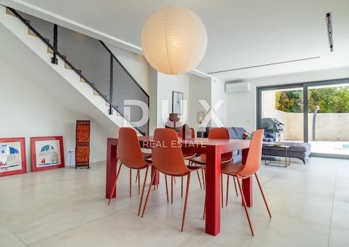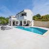 Die Insel Krk, Vrbnik - Luxushaus mit Pool in Meeresnähe Das Haus hat eine Gesamtfläche von 150 m2, erstreckt sich über zwei Etagen, Erdgeschoss und erster Stock, die durch eine Innentreppe miteinander verbunden sind, und befindet sich auf einem Grundstück von 470 m2 . Das Erdgeschoss verfügt über einen überdachten Eingang, Flur, Wohnzimmer mit Küche und Essbereich, Speisekammer, Toilette, Abstellraum, Waschküche, Innentreppe. Das Wohnzimmer öffnet sich auf eine überdachte Terrasse von 30m2 und ein Sonnendeck. In der Speisekammer befindet sich eine Vorbereitung für die Sauna. Im ersten Stock befinden sich drei Schlafzimmer mit eigenem Bad mit Zugang zu einer Terrasse von 15 m2 und einer Loggia von 3 m2 mit Meerblick. Während des Baus wurden hochwertige Materialien und Geräte verwendet, die eine hochwertige Konstruktion garantieren, klimatisiert mit 5 Klimaanlagen, Fußbodenheizung im ersten Stock, Videoüberwachung, WLAN, 2 Schornsteine und Vorbereitung für Außen- und Innenkamin, Aluminiumtischlerei , Sicherheitstüren. Es gibt einen beheizten Swimmingpool im schön angelegten Garten und zwei Parkplätze sind vorhanden. Ruhige Lage, in der Nähe der Grünzone, 500 m vom Meer entfernt.
