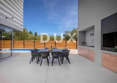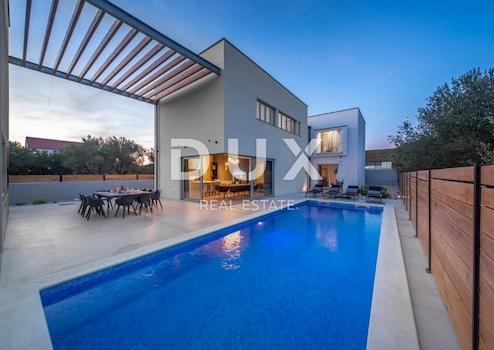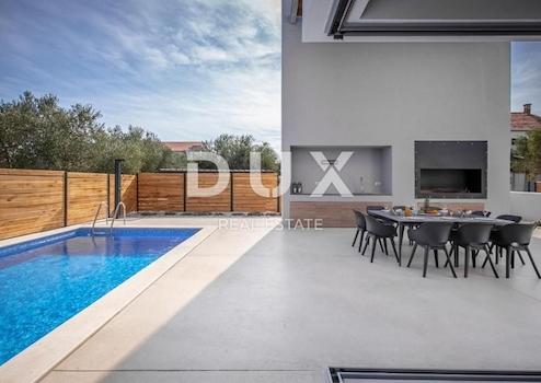 Entlang der Küste gibt es einen Brunnen mit Trinkwasser, das nicht austrocknet, und das Haus von Emile Zola, einem französischen Schriftsteller. Spektakuläre Villa zum Verkauf in einer wunderschönen dalmatinischen Stadt in der Nähe von Zadar. Diese Villa ist so gebaut, dass sie jeden Kunden bis ins kleinste Detail zufriedenstellt. Das Haus besteht aus zwei Etagen und ist als Haus für Ruhe, Erholung und Genuss konzipiert. Das Haus besteht aus einem Erdgeschoss mit einer schön eingerichteten Küche, einem Esszimmer, einem geräumigen Wohnzimmer mit Kamin und Blick auf den Pool, einer Toilette und einem Freizeitraum mit Sauna und Fitnessraum. Das Obergeschoss erreicht man über eine hochwertig gestaltete Treppe. Das Obergeschoss ist zweigeteilt. Jeder Teil besteht aus einem Hauptschlafzimmer, einem kleinen separaten Arbeitsbereich mit Intimität und einem Schlafzimmer mit Doppelbett. Jedes Zimmer ist mit einem eigenen Badezimmer mit Dusche ausgestattet und ein Zimmer neben der Dusche hat ein eigenes Bad. Das Sonderangebot der Villa umfasst einen Entspannungsbereich mit Sauna, Fitnessraum und Dusche. Im schönen Hof befindet sich ein Swimmingpool von 35 m2, der von 4 Liegestühlen umgeben ist. Es gibt auch einen künstlichen Felsen mit einer Höhe von 6 m. Draußen finden Sie einen Grill und einen Esstisch im Freien mit Freunden und Familie. Das gesamte Anwesen ist vollständig von einer Betonmauer umgeben, die den Gästen Komfort und Privatsphäre bietet. Diese spektakuläre Villa mit einzigartigem Aussehen und Inhalt wartet auf neue Kunden, die einen aktiven Urlaub und ein aktives Leben verbringen möchten.