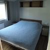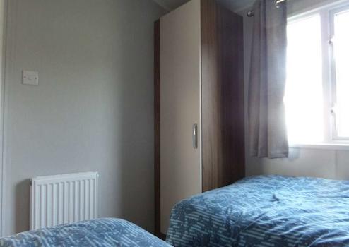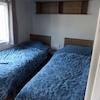 Schlafzimmer mit 2 Einzelbetten und Kleiderschrank.