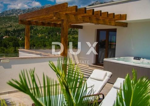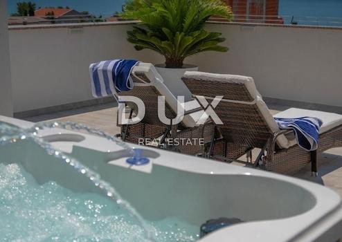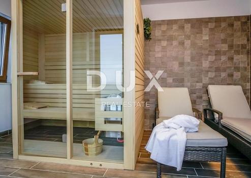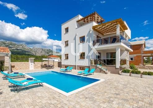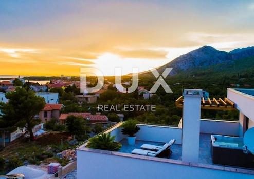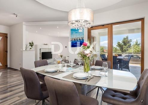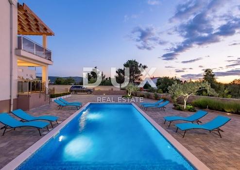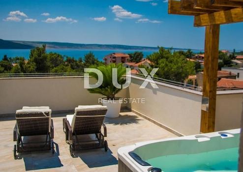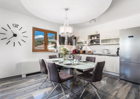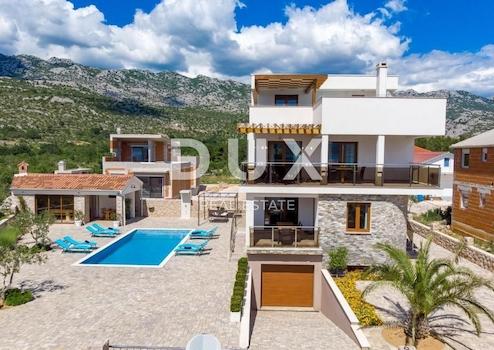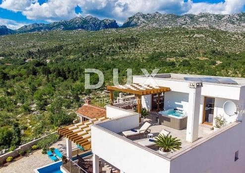 Wir verkaufen eine schöne Villa in der Nähe des Nationalparks Paklenica. Es ist nur 750 Meter vom Strand entfernt und so gelegen, dass seine Terrasse einen wunderschönen Blick auf die Adria und Velebit bietet. Die Villa befindet sich auf einem umzäunten Hof. Es besteht aus Keller, Erdgeschoss, Obergeschoss und Obergeschoss. Im Untergeschoss befindet sich eine Garage für zwei Autos. Im Erdgeschoss befinden sich Wohnzimmer: Küche mit Essbereich, Wohnzimmer mit Ausgang zur Terrasse, WC und ein Schlafzimmer mit eigenem Bad. Auf der ersten Etage befinden sich drei Schlafzimmer, von denen eines ein eigenes Bad hat und die anderen beiden sich eins teilen. Jedes Zimmer hat Zugang zu einer großzügigen Terrasse, von der Sie Sonnenauf- und -untergänge genießen können. Im dritten und letzten Obergeschoss befindet sich auf der Dachterrasse ein Spa-Bereich. Es gibt eine Sauna, einen Whirlpool und ein Badezimmer sowie im offenen Teil Liegestühle zum Entspannen. Im Garten gibt es einen Swimmingpool mit Sonnendeck und eine Sommerküche mit Geräten und Möbeln zum Essen. Die Heizung in der Villa erfolgt über Fußbodenheizung über Sonnenkollektoren und die Kühlung über einen Gebläsekonvektor. Das Anwesen ist sehr gut gebaut und es wurden hochwertige Materialien und Geräte verwendet.