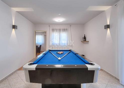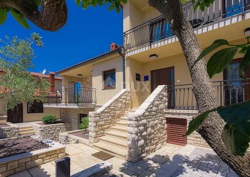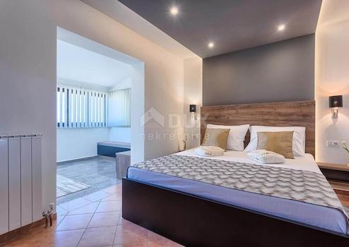 In einem ruhigen Teil des Touristenortes Valbandon, nur ca. 1 km vom nächsten Strand entfernt, auf einem Grundstück von sage und schreibe 5000m2 gelegene Villa mit einer Gesamtfläche von 600m2. Die außergewöhnliche Villa ist eine ideale Kombination aus traditionellem istrischen Stil und moderner Dekoration. In Stein gekleidet, fügt es sich perfekt in das Bild der istrischen Landschaft ein und ist gleichzeitig hervorragend modern. Das Innere der Villa ist in zwei separate Häuser unterteilt, ein kleineres und ein größeres. Das kleinere Haus besteht aus einer Taverne und einem Unterhaltungsraum mit Billardtisch und Darts im Erdgeschoss, während sich im Obergeschoss zwei Schlafzimmer und zwei Badezimmer befinden. Die Taverne dient als verschließbare und klimatisierte Außenküche, was es an heißen Sommertagen noch angenehmer macht. Im Erdgeschoss des größeren Hauses befinden sich ein Wohnzimmer, eine Küche mit Essbereich, ein Wellnessbereich mit Whirlpool und Sauna sowie ein Fitnessraum mit Geräten. Im ersten Stock des größeren Hauses befinden sich vier Schlafzimmer und vier Badezimmer. Das Wohnzimmer ist geräumig, hat einen Kamin und direkten Zugang zur Außenterrasse. Im ganzen Haus ist eine Öl- und Gaszentralheizung installiert, und die Villa ist mit 11 Klimaanlagen zur Kühlung ausgestattet. Ein großer privater Pool von 72m2 befindet sich in einem weitläufigen Garten. Der Hof ist landschaftlich gestaltet, eingezäunt und mit einer großen Rasenfläche mit 85 Olivenbäumen geschmückt und bietet ausreichend Parkplätze für neun Autos. Die Lage ist ruhig und sicher und ideal für einen Urlaub oder einen sicheren und friedlichen Aufenthalt das ganze Jahr über. Ideale Immobilie für eine touristische Investition oder ein Familienleben.