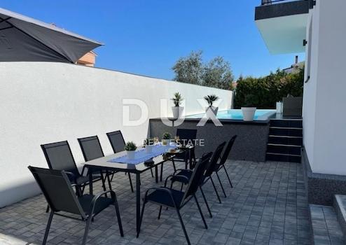 In einem kleinen Dorf in der Nähe von Pula, Stinjan, nur 600 m vom Meer entfernt, befindet sich diese moderne freistehende Villa von 255 m2 auf einem Grundstück von 402 m2 und einem Swimmingpool von 30 m2. Es besteht aus Erdgeschoss und Obergeschoss. Das Erdgeschoss verfügt über eine Küche mit Essbereich, ein geräumiges Wohnzimmer mit Zugang zur Terrasse mit Pool und Außengrill und 2 Schlafzimmer mit Badezimmern (ebenerdige Dusche). Im ersten Stock befinden sich 3 Schlafzimmer, ein Kinderzimmer, 2 Bäder und ein Wohnzimmer mit Zugang zur Terrasse mit Meerblick. In der Nähe des Meeres und aller notwendigen Einrichtungen, ordnungsgemäße Dokumente, 4 Parkplätze. Das Anwesen ist mit modernen und eleganten Möbeln, Sat-TV, Videoüberwachung ausgestattet und wird komplett möbliert verkauft. Diese Immobilie ist ideal für Investoren im Tourismus, da sie für den Zweck der touristischen Vermietung kategorisiert ist.
