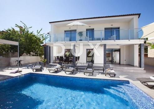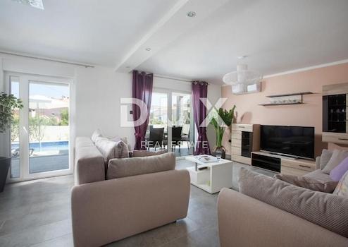 In einem Teil der Gemeinde Medulin, 1500 Meter vom Meer entfernt, steht eine Villa mit Swimmingpool in toller Lage zum Verkauf. Die Villa von 220 m2 erstreckt sich über das Erdgeschoss und den ersten Stock. Das Erdgeschoss verfügt über ein Wohnzimmer mit Billardtisch, Küche, Esszimmer, Abstellraum und Badezimmer, während der erste Stock über vier Schlafzimmer und drei Badezimmer verfügt. Die Villa ist voll klimatisiert, möbliert und ausgestattet und wird als solche verkauft. Auf dem umzäunten und gepflegten Garten, videoüberwacht, gibt es einen Swimmingpool mit Sonnendeck, Sommerküche, Parkplätze und eine Nebeneinrichtung mit Toilette, die als Ruheraum dient und auch als Wellnesscenter dienen kann. Dies ist der perfekte Ort für Ruhe und Entspannung oder das Familienleben. GELEGENHEIT!!!