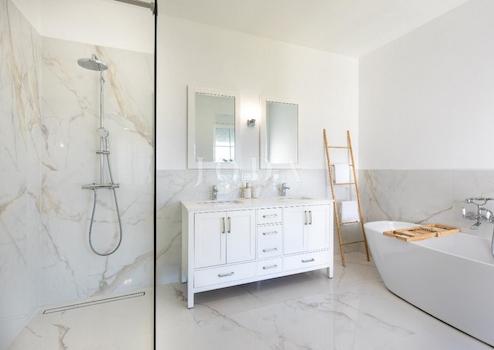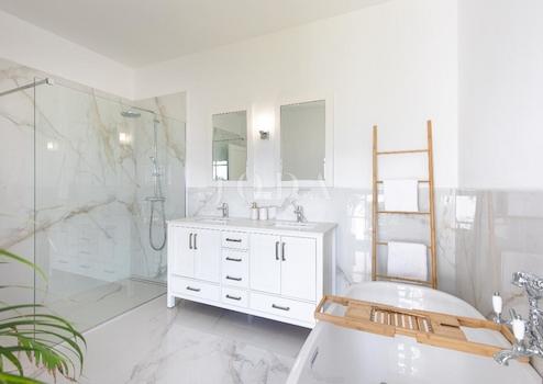 Das Innere des Hauses ist in 4 Schlafzimmer aufgeteilt, jedes mit eigenem Badezimmer (davon 2 Hauptschlafzimmer - mit begehbaren Kleiderschränken und Badezimmern und mit Badewanne und Dusche).