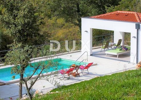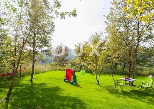 Auf der Fahrt durch Weinberge mit fantastischem Blick auf das umliegende Tal und die antike Stadt Motovun steht ein markantes Haus im Erdgeschoss mit einem abgeschiedenen Pool zum Verkauf. Das Haus von 110m2 besteht aus einem Wohnzimmer mit Kamin, Esszimmer und offener Küche, Toilette und zwei Schlafzimmern mit eigenem Bad. Alle Räume sind lichtdurchflutet und haben Zugang zu einer eingekerbten Terrasse rund um das Haus mit spektakulärem Blick auf die umliegende Natur. Auf der nach Westen ausgerichteten überdachten Terrasse gibt es eine ausgestattete Sommerküche und einen großen Grill. Das Zentrum des Anwesens ist ein beheizter Pool von 27 m2 mit Sonnendeck. Am Pool befindet sich eine Nebeneinrichtung von 28 m2, die in einen Spa- und Wellnessbereich umgewandelt werden kann. Das Haus verfügt über einen eigenen Parkplatz und einen Fahrradkeller. Der weitläufige, sorgfältig angelegte Garten wird automatisch bewässert und ist mit Unterhaltungs- und Entspannungsmöglichkeiten ausgestattet. Das Haus ist von viel Grün umgeben, wo es keinen Verkehr gibt, nur die Geräusche der Natur. Es liegt sehr ruhig (die ersten Nachbarn sind 300 m entfernt) am Südhang mit schöner Aussicht. Um das Haus herum befinden sich eingerückte Terrassen, die viele Möglichkeiten zum Entspannen oder Sonnenbaden bieten, die sich abends in ein Open-Air-Kino mit Projektionen auf der großen Leinwand verwandeln. Dieses charmante Haus mitten in der Natur ist ideal für Familienleben, Erholung und Entspannung oder als Investition zur Miete für touristische Zwecke (es ist mit 4 Sternen kategorisiert).