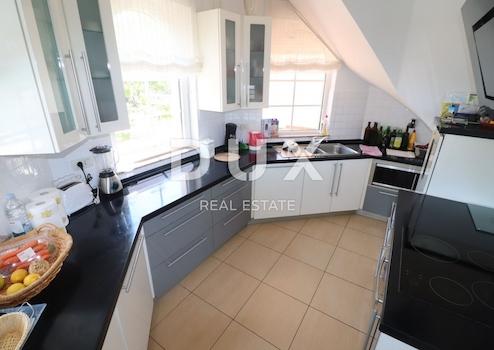 Die Villa liegt in einer Sackgasse auf einem Hügel, umgeben von viel Grün und mit Blick auf das Meer. Die Villa wurde 2008 gebaut. Es besteht aus Erdgeschoss und Obergeschoss. Das Erdgeschoss ist als Fitnessraum mit Sauna konzipiert, der auch über ein Schlafzimmer mit eigenem Bad und WC verfügt. Der erste Stock besteht aus drei Schlafzimmern, von denen jedes über ein eigenes Badezimmer mit WC verfügt, einem Wohnzimmer mit großen Glaswänden, von dem aus Sie einen schönen Blick auf das Meer und die Küche haben. Auch vom ersten Stock aus gelangt man auf die Galerie, die sich in der Kuppel befindet, wo man einen Panoramablick hat. Die Villa verfügt über eine eigene Garage, in der zwei Autos Platz finden. Im Garten befindet sich ein Swimmingpool mit Meerblick, Heizung und Kühlung erfolgt über eine Wärmepumpe und jedes Zimmer hat eine eigene Einheit. Das Apartmenthaus wurde 2000 erbaut und besteht aus vier separaten Wohnungen. Jede Wohnung hat zwei Schlafzimmer, Badezimmer mit WC, Küche, Wohnzimmer und Ausgang zur Terrasse. Außerdem verfügt jede Wohnung über eine eigene Klimaanlage und Heizung, die über einen gemeinsamen Heizraum mit festen Brennstoffen betrieben wird.Großartige Gelegenheit in ruhiger Lage!