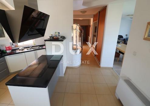 Es liegt in einer Sackgasse auf der Spitze des Hügels, umgeben von viel Grün und mit Blick auf das Meer. Die Villa wurde 2008 gebaut. Es besteht aus Erdgeschoss und Obergeschoss. Das Erdgeschoss ist als Fitnessraum mit Sauna konzipiert, der auch über ein Schlafzimmer mit eigenem Bad und WC verfügt. Der erste Stock besteht aus drei Schlafzimmern, von denen jedes über ein eigenes Badezimmer mit WC verfügt, einem Wohnzimmer mit großen Glaswänden, von dem aus Sie einen schönen Blick auf das Meer und die Küche haben. Auch vom ersten Stock aus gelangt man auf die Galerie, die sich in der Kuppel befindet, wo man einen Panoramablick hat. Die Villa verfügt über eine eigene Garage, in der zwei Autos Platz finden. Im Garten befindet sich ein Swimmingpool mit Meerblick, Heizung und Kühlung erfolgt über eine Wärmepumpe und jedes Zimmer hat eine eigene Einheit. Tolle Gelegenheit in ruhiger Lage!
