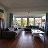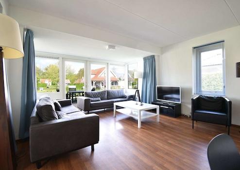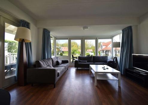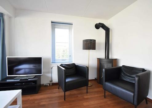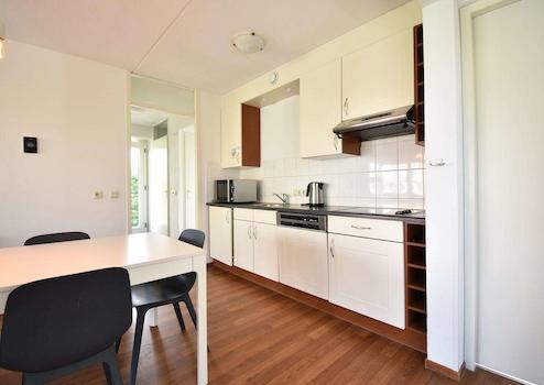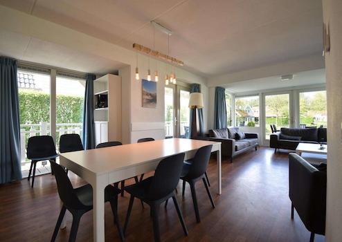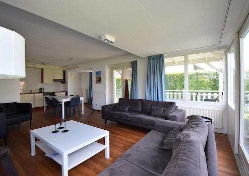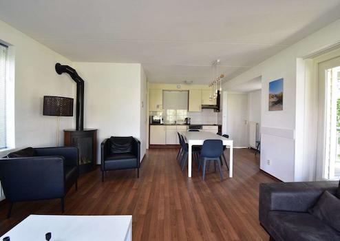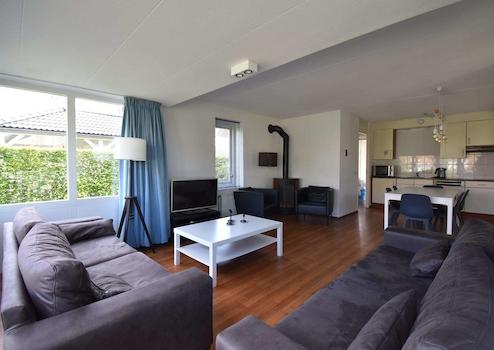 Durch die großen Fenster und die damit verbundene überdachte Veranda ist dieses Wohnzimmer ein gemütlicher Raum. Das Wohnzimmer ist mit einem Vinylboden ausgestattet. Da die überdachte Veranda Teil des Wohnzimmers ist und die Küche in offener Verbindung mit dem Wohnzimmer steht, bietet Ihnen dieses Ferienhaus viel Lebensraum. Das Haus ist komplett ausgestattet für 8 Personen. Das Wohnzimmer hat Türen, die einen direkten Zugang zur Veranda und zum Garten ermöglichen.