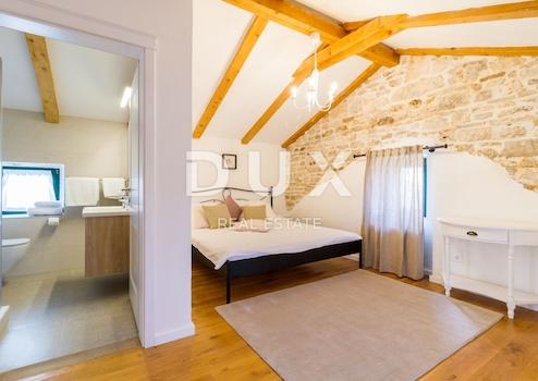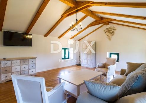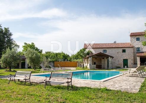 Diese schöne istrische Villa mit Swimmingpool befindet sich auf einem weitläufigen Grundstück von 17.500 m2. Die Villa hat eine Wohnfläche von 280 m2 und besteht aus einem Erdgeschoss und zwei Etagen. Die Innenausstattung umfasst 4 komfortable Schlafzimmer, jedes mit eigenem Bad, ausgestattet mit Klimaanlage und Sat-TV, 2 geräumige Wohn- und Essbereiche und eine voll ausgestattete Küche. Das Interieur ist gemütlich und vermittelt den Eindruck von traditionellem Stil in Details wie einem schönen und seltenen rustikalen Boden, alles mit dem Komfort moderner Details wie Möbel und Badezimmer. Der Garten des Anwesens ist angelegt und gepflegt und teilweise eingezäunt. Es enthält einen schönen Pool von 72 m2 mit einem schönen Blick auf das umliegende Grün. Es gibt auch eine Sauna, eine Sommerküche mit überdachter Terrasse, einen bequemen Parkplatz, der teilweise überdacht ist, und ein Nebengebäude von 30 m2. Das Anwesen verfügt über ein gut etabliertes touristisches Vermietungsgeschäft und eine gut etablierte komplette Infrastruktur von der Immobilienpflege während des ganzen Jahres bis hin zu Marketing und Buchung.