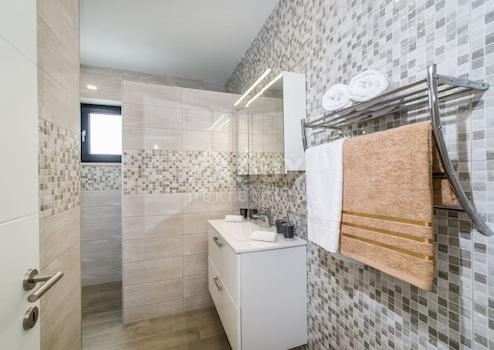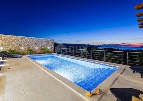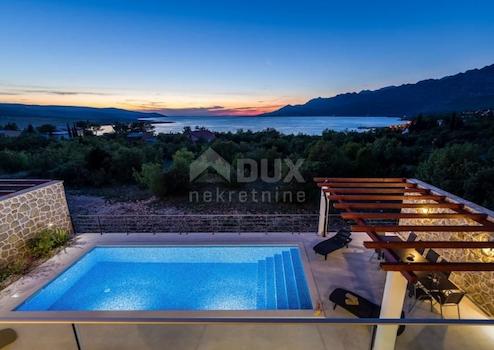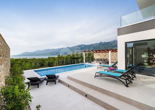Villa mit Pool in der Nähe von Starigrad Paklenica mit wunderschönem Meerblick zu verkaufen. Die Gesamtwohnfläche beträgt 216 m2. Die Villa besteht aus zwei Etagen und einer Dachterrasse. Das Erdgeschoss besteht aus einer Küche und einem geräumigen Wohnzimmer, das sich auf einen mit Brac-Stein gepflasterten Innenhof mit Swimmingpool und Sonnendeck öffnet. Im Erdgeschoss befinden sich ein Badezimmer, ein Nebenraum und eine Garage, die sowohl vom Flur als auch von außen zugänglich ist. Auf der ersten Etage befinden sich vier Schlafzimmer, zwei mit eigenem Bad, und ein weiteres Gemeinschaftsbad und eine große Terrasse. Auf der obersten Etage befindet sich eine große Terrasse, die teilweise überdacht ist, einen Whirlpool, eine kleine Bar und eine Lounge bietet.Die Terrasse bietet einen schönen, offenen Meerblick,