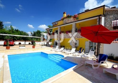 In der weiteren Umgebung von Poreč steht eine Villa mit Swimmingpool zum Verkauf. Es verfügt über insgesamt 486 m2, verteilt auf Erdgeschoss, Obergeschoss und Dachgeschoss. Im Erdgeschoss befindet sich eine große Wohnung von ca. 150 m2 mit drei Schlafzimmern. Im Obergeschoss befinden sich zwei Wohnungen von 65 m2 und eine große Terrasse von 30 m2. Im hohen Dachgeschoss befindet sich auch eine große Wohnung von ca. 130 m2. Der Hof ist gepflastert, so dass er nicht viel Pflege benötigt, und es gibt drei überdachte Parkplätze, einen großen Pool und eine Sommerküche. Das Haus wurde 2014 gebaut, klimatisiert und hat Stammgäste. Möbliert verkauft. Es ist ein ideales Objekt, das zu Vermietungszwecken genutzt werden kann, aber auch für ein ruhiges Familienleben, ausgestattet mit der neuesten Technologie, nur wenige Autominuten vom Meer und schönen Stränden, den ersten Geschäften und Restaurants entfernt.