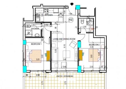 Dieses Apartment verfügt über einen großen Balkon der sowohl vom Wohnzimmer als auch vom Hauptschlafzimmer mit Blick auf den Gemeinschaftspool zu begehen ist. Diese Wohnung verfügt über Marmorböden, eine hochwertige Einbauküche sowie ein Badezimmer mit Dusche und ein Badezimmer mit Badewanne.