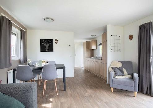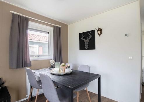 Schönes, neuwertiges, weniger als ein Jahr altes Freizeitchalet auf Privatgrundstück. Das Chalet liegt im Holiday Chalet Park in Hensbroek in Nordholland. Ruhig am Rande des eigenen Angel-/Freizeitsees gelegen. In der Umgebung gibt es viele Wander- und Radwege. Das Chalet ist etwa 30 Autominuten vom Strand entfernt. Das Chalet ist komplett möbliert und kann über den Park nachgebaut oder vermietet werden. Dieses Chalet steht auch zusammen mit dem angrenzenden Chalet 374B zum Verkauf
