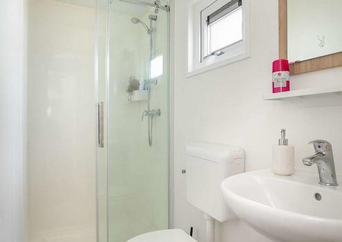 Das Chalet verfügt über ein gepflegtes Duschbad mit Waschbecken und Toilette.