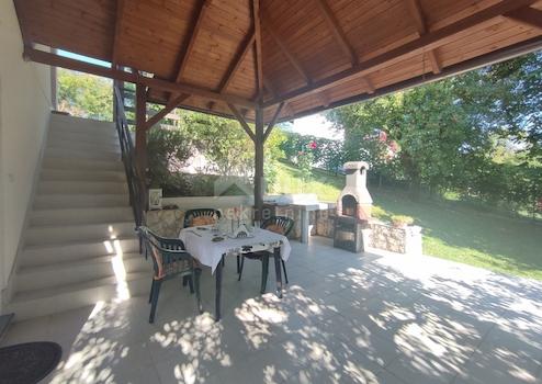 Dieses kleinere Einfamilienhaus mit insgesamt 115 m2 Wohnfläche verteilt auf zwei Etagen liegt direkt am Fluss. So befinden sich im Erdgeschoss in einem größeren offenen Raum eine sonnige Küche, Wohn- und Esszimmer sowie ein größeres Badezimmer. Von der Küche gibt es einen direkten Ausgang auf die größere überdachte Terrasse, ideal für einen Morgenkaffee oder ein Glas Wein am späten Nachmittag. Eine Außentreppe führt in die obere Etage des Hauses, wo sich 2 Schlafzimmer und ein Badezimmer befinden. Jedes der Schlafzimmer hat eine eigene Terrasse mit freiem Blick in die Umgebung und ins Grüne. Der 722 m² große Hof bietet mehr als genug Platz für Spaß und Entspannung mit Freunden und Familie. Auf der Rückseite des Hauses befindet sich ein kleiner üppiger Garten, während der vordere Teil des Gartens mit verschiedenen Blumen und einheimischen Apfelbäumen geschmückt ist. Auf dem Garten bleibt genügend Platz für die Einrichtung eines Zwischengeschosses und zusätzlicher begleitender Inhalte. Es ist eine komplett renovierte Immobilie, ideal für alle, die einen Ort zum Ausruhen suchen und dem Stadtleben entfliehen möchten, oder als Investitionsoption für die ganzjährige Vermietung.