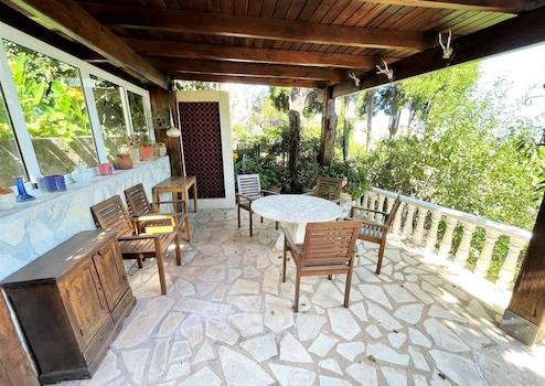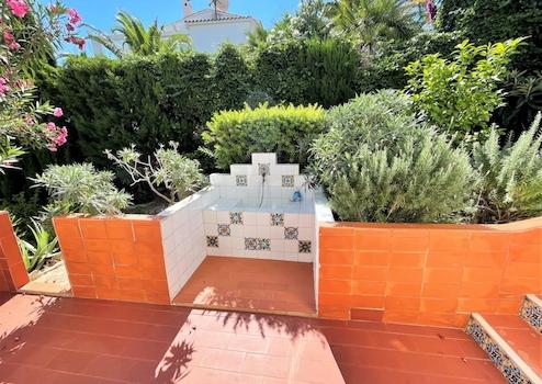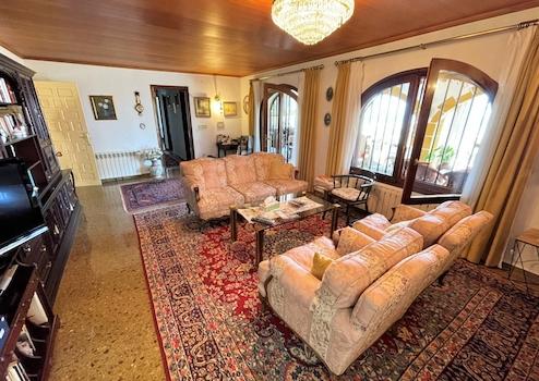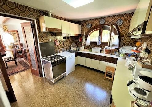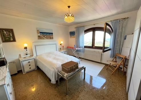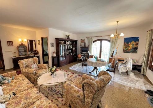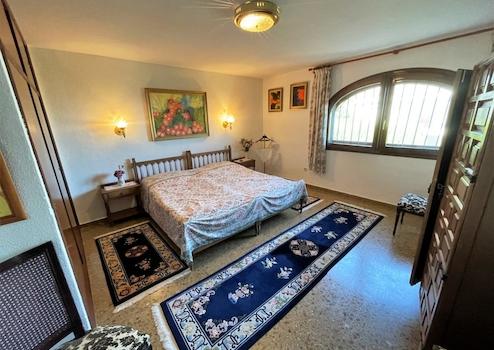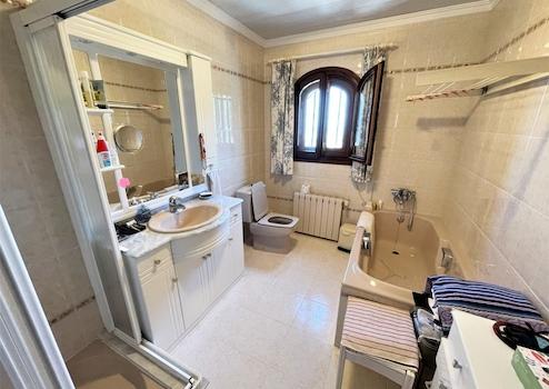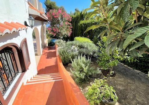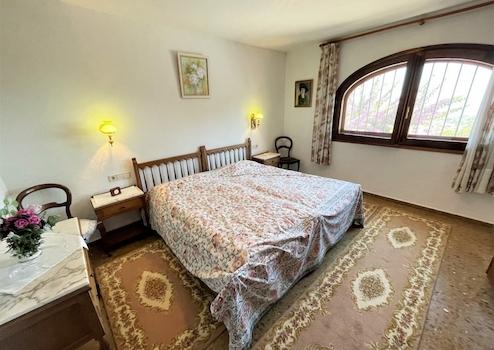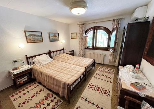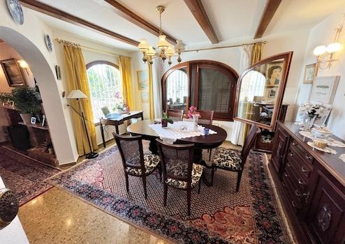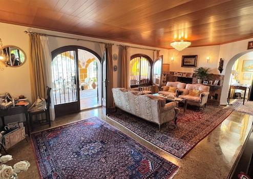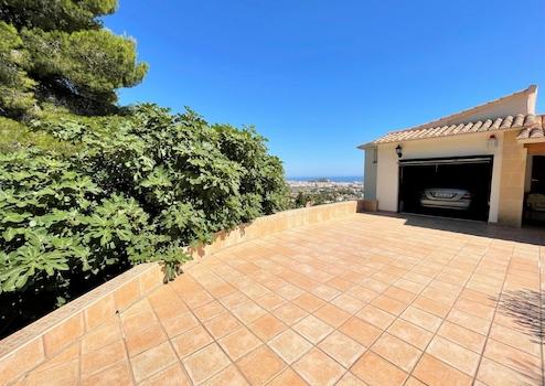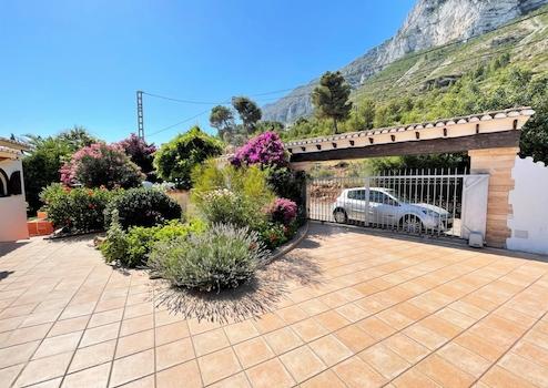 Dieses wunderbare Haus befindet sich direkt am Fuss des Montgo. Von den Terrassen hat man einen überwältigenden Panoramablick über ganz Denia, die Umgebung und das Meer. Rund um das Haus gibt es viele verschiedene Obstbäume und blühende Pflanzen und Sträuchern. Direkt neben der Einfahrt mit der grossen Garage gelangen wir ins Haus. Von dem kleinen Eingangsbereich gelangt man in das geräumige Wohnzimmer mit direkter Anbindung an den Wintergarten und Balkon. Auf derselben Etage befinden sich noch zwei Schlafzimmer, ein WC und ein vollständiges Badezimmer. Über die Aussentreppe gelangt man zum Hauswirtschaftsraum mit der Zentralheizung und auch zur zweiten Wohnung. Diese Wohnung kann unabhängig von der oberen benutzt werden, da sich dort ebenfalls ein Wohnzimmer, eine Küche, zwei Schlafzimmer, ein WC und ein vollwertiges Bad befinden. Ausserdem haben wir auf dieser Etage ebenfalls ein zum Meeer ausgerichteten Balkon. Über die typisch mediteran gestaltete Treppe gelangen wir zur grossen Terrasse mit Aussendusche, Pool, Grillplatz und dem Zugang zu den Obstbäumen. Ein kleines Stück weiter befindet sich eine weitere überdachte Terrasse die zusätlich mit Fenstern ausgestattet ist, damit man auch an windigen Tagen das Ambiente geniessen kann. Neben der Treppe gibt es noch einen Raum mit Waschbecken, einem seperaten Abstellzimmer und einem WC.