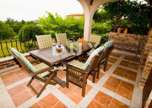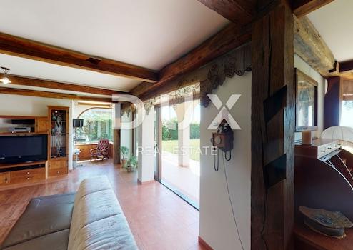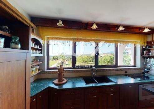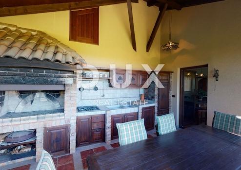 Wir haben diese einzigartige Villa mit großem Garten im Angebot. Neben der Villa und den dazugehörigen Teilen gibt es auf dem 8000 m großen Garten etwa 50 Olivenbäume und die gleiche Anzahl Obstbäume. Der komplette Garten ist bebaubar, so dass er den neuen Eigentümern ein beruhigendes Gefühl gibt, oder er kann für den Bau neuer Gebäude genutzt werden. Die Villa selbst, komplett im rustikalen Stil eingerichtet, ist bezaubernd. Es besteht aus Keller, Erdgeschoss und Obergeschoss. Die Villa bietet mehrere Eingangsmöglichkeiten, aber der Haupteingang führt uns direkt ins Erdgeschoss, wo sich eine Küche mit einem Wohnzimmer befindet, das sich auf eine schöne Terrasse öffnet. Auch im Erdgeschoss haben wir ein Badezimmer, Waschmaschine/Trockner, Kleiderschrank. Es gibt eine Sommerküche mit Grill auf der Terrasse und eine Garage neben dem Haupteingang. Das Erdgeschoss hat ca. 175m2. Die erste Etage der Villa besteht aus drei Schlafzimmern mit zwei Bädern, einem Flur und einem Kleiderschrank. Die Wohnfläche der Etage beträgt ca. 100 m2 Im Untergeschoss der Villa befinden sich ein Billardzimmer, eine Taverne, ein Zimmer und zwei weitere Abstellräume mit einer Gesamtfläche von ca. 130 m2. Zur Beheizung des gesamten Hauses wird eine Fußbodenheizung verwendet. Die gesamte Villa ist in einer Kombination aus Backstein, Stein und Holz dekoriert, was ihr einen besonderen Charme verleiht. Eine sehr interessante Immobilie und eine Rarität auf dem Markt.