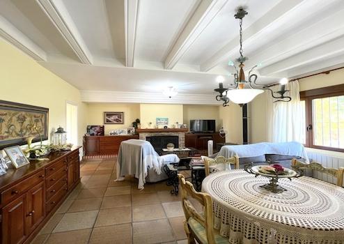 Diese Villa / Stadthaus in der Nähe von Ondara liegt auf einem ca.1.800m² Grundstück und hat eine Wohnfläche von 320m², die sich über zwei Ebenen erstreckt. Im Erdgeschoss befindet sich ein helles Wohn-Esszimmer mit offener Küche und Ausgang zu einer überdachten Terrasse, ein weiteres geräumiges Wohnzimmer mit Kamin und eine weitere Küche. Von dem Flur aus hat man Zugang zu den 4 Schlafzimmern mit Einbauschränken, einem Familien Badezimmer und einer Gäste Toilette. Über eine Innentreppe, aber auch durch eine Außen Treppe kommt man in die obere Etage, die sich noch im Rohbau befindet. Mit 3 separaten Räumen, die noch nach persönlichem Geschmack gestaltet werden können. Hier kann man noch seinen Wünschen freien Lauf lassen. Von einer XXL großen Sonnenterasse genießt einen weiten Blick auf die Berge, die Landschaft und das Dorf. Es gibt einen großen Pool der von einer großen Sonnenterrasse umgeben ist. Ein separates BBQ-Haus mit einer Sommerküche, Außendusche und Außen WC, sind nur wenige Schritte vom Pool entfernt. In einem Teil des Gartens befinden sich verschiedene Obstbäume. Der Carport bietet Platz für 2 PKW´s, sowie weitere Parkmöglichleiten. Das Haus hat eine Gaszentralheizung. Es besteht auch die Möglichkeit das Haus zu vergrößern, da es sich bei dem Grundstück um komplett bebaubares Land handelt. Daher ist das Objekt auch für Bauträger interessant.