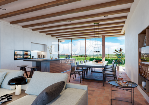 Auf einem einzigartigen unberührten Hügel in der Nähe des schönen Brtonigla, ca. 7 km von Novigrad entfernt, umgeben von Weinbergen und Olivenhainen mit einem besonderen Panoramablick, befindet sich diese wunderschöne Luxusvilla mit einer Wohnfläche von 247 m2. Im Westen gibt es einen 180-Grad-Blick auf das Meer, einen Blick auf das charmante Städtchen Brtoniglu und die italienische Küste und im Norden im Winter sogar auf die Alpen. Im Osten bietet sich ein fabelhafter Blick auf die Landschaft des Inneren Istriens. Der größte Vorteil dieses Standorts ist die Nähe zu Bayern, Slowenien, Österreich, der Schweiz und Norditalien. Es ist eine neue kleine Siedlung, die insgesamt 9 Villen enthalten wird, und die Hauptrichtlinie und Bedingung bei der Gestaltung war, dass jede Villa einen Blick auf das Meer und ihre eigene Privatsphäre hat. Ästhetisch wird es von außen ähnlich aussehen, so dass die gesamte Siedlung mit der Umgebung verbunden und harmonisiert ist. Das Villenkonzept ist moderne istrische Architektur mit großen Glasöffnungen, die mit istrischen Elementen verbunden und angereichert werden - Trockenbau, Holzbalken an der Decke im Wohnzimmer und dergleichen. Der Strand rund um den Pool und der Pool selbst werden mit größerer italienischer Keramik gepflastert. Wohnzimmer und Zimmer können mit Eichenparkett oder auf Wunsch mit Keramik ausgelegt werden. Die Quadratmeterzahl der Häuser ist nur ein Richtwert, da jedes Haus an die Wünsche des Kunden angepasst wird und kleiner sein kann. Diese schöne Villa hat eine Gartenfläche von 1464 m2. Die außergewöhnliche Lage und die Schönheit der Natur, die diesen Ort umgibt, bieten eine perfekte Gelegenheit und gewährleisten gleichzeitig Ruhe und Privatsphäre für den zukünftigen Eigentümer. PREIS AUF ANFRAGE!