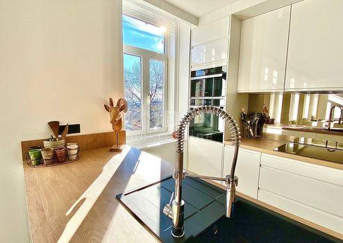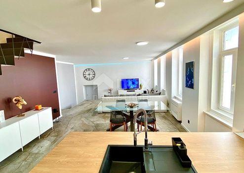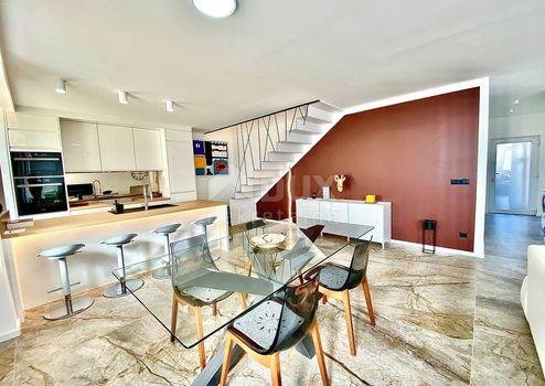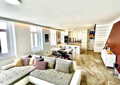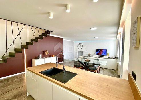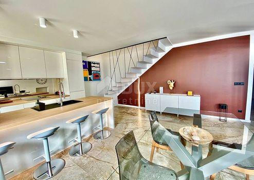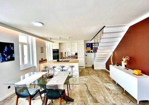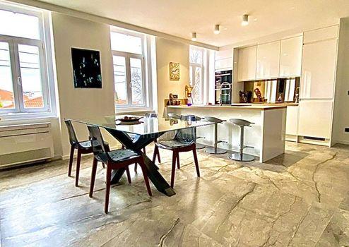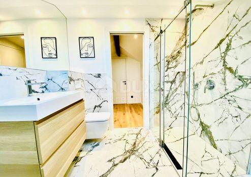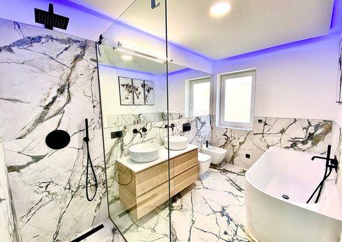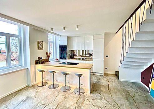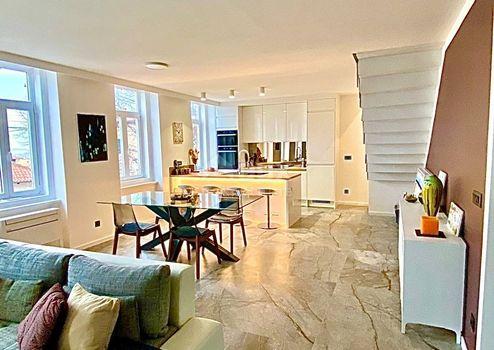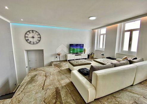 Aus unserem Angebot heben wir eine besondere Immobilie im Zentrum von Opatija hervor. Es ist eine schöne Wohnung mit einer Wohnfläche von 120m2 in österreichisch-ungarischer Bauweise. Die Wohnung erstreckt sich über zwei Etagen: - offenes Wohnzimmer mit Kochinsel, Esszimmer, Badezimmer, Ausgang zur Terrasse, Flur, Treppe in den ersten Stock - im ersten Stock befinden sich 3 geräumige Schlafzimmer und ein größeres Badezimmer Der jetzige Besitzer hat Luxus im Design, Modernität und mediterranes Flair geschickt kombiniert und so eine Gelegenheit für Liebhaber des Zentrums von Opatija und hoher Decken geschaffen. Die großen Fenster der nach Süden ausgerichteten Wohnung mit Blick auf das Meer fügten dem Raum eine Besonderheit hinzu. Marmor, Parkett in den Schlafzimmern, Fußbodenheizung, hochwertige Tischlerarbeiten, teilweise maßgefertigte Möbel. Die Wohnung hat einen hinteren Ausgang zu einer privaten Terrasse. Der Zugang zur Wohnung selbst ist sehr einfach. Die Villa selbst wird regelmäßig gewartet. Die Villa liegt 1 Gehminute von der Maršala Tita Straße, der Hauptstraße von Opatija, entfernt und der Weg zum Meer ist 300 Meter entfernt.