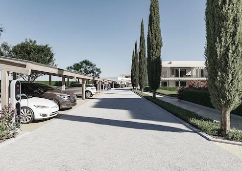 Hier entstehen Wohnungen mit 2 oder 3 Schlafzimmern und 2 Bädern, eines davon en-suite, und Penthouse-Wohnungen mit großer Terrasse und Dachterrasse. Die Erdgeschoss-Wohnungen verfügen über einen privaten Garten. Alle Wohnungen verfügen zudem über einen überdachten Außenparkplatz.