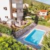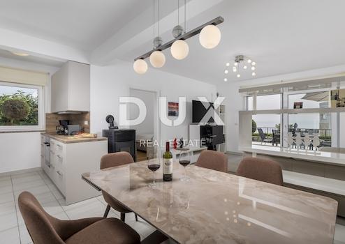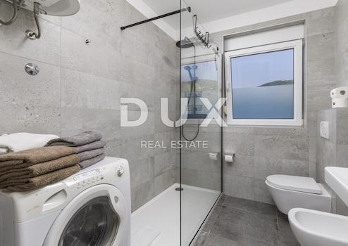Zur Saisonmiete präsentieren wir eine ausgezeichnete Wohnung im Erdgeschoss des letzten Baus, Größe 65m2 + Terrasse von 150m2. Die Wohnung hat eine wunderbare Aufteilung - zwei Schlafzimmer, ein renoviertes Badezimmer mit ebenerdiger Dusche und ein großes Wohnzimmer mit Küche und Esszimmer, das sich auf eine private, eingezäunte Terrasse mit Meerblick öffnet. Von der erwähnten Terrasse gelangt man hinunter zum Gemeinschaftspool. Im Haus befinden sich 2 weitere Privatwohnungen, die ausschließlich im Sommer vermietet werden. Pelletofen, einbruchsichere Tür, 2 private Parkplätze, Gemeinschaftspool, Glasfaser-Internet, ruhige und private Straße, private Terrasse, viel Tageslicht, sind nur einige der Vorteile dieses schönen und warmen Zuhauses. Das Haus befindet sich eine zweiminütige Fahrt vom Strand von Ičići oder einen 10-minütigen Spaziergang bergab entfernt - in einer der schönsten Straßen von Ičići. Der Preis beträgt 900 € pro Monat für die gesamte Wohnung + Nebenkosten und bezieht sich auf die Wintermietzeit vom 01.10.-01.06. Es besteht die Möglichkeit der Langzeitmiete das ganze Jahr über zu einem höheren Preis (aufgrund der üblichen Touristenmiete).