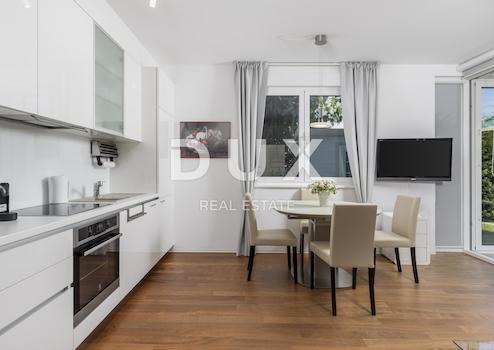 Zur Saisonmiete präsentieren wir eine ausgezeichnete Wohnung im Erdgeschoss eines neuen Gebäudes, Größe 65m2. Die Wohnung hat eine wunderbare Aufteilung - zwei Schlafzimmer, eines für Eltern und das andere für ein Kind, ein Badezimmer mit Dusche und ein großes Wohnzimmer mit Küche und Esszimmer, das auf eine 25 m² große verglaste Terrasse führt. Noch wichtiger ist der Zugang zu Ihrem eigenen Garten von 120 m2 mit Gartenmöbeln und Grill. In dem Gebäude befinden sich 4 weitere Apartments und auf dem Dach befindet sich ein gemeinsamer Dachpool mit einem atemberaubenden Panoramablick auf das Meer. Isolierung, Klimaanlage in jedem Zimmer, Parkett, maßgefertigte Küche, elektrische Rollläden, einbruchsichere Türen, 2 private Parkplätze, Swimmingpool auf dem Dach, Glasfaser-Internet, ruhige und private Straße, privater Garten, viel Tageslicht, sind nur einige der Vorteile dieses wundervollen und warmen Zuhauses. Das Gebäude befindet sich eine zweiminütige Fahrt vom Strand von Ičići oder einen 10-minütigen Spaziergang bergab entfernt - in einer der schönsten Straßen von Ičići. Der Preis beträgt 850 € pro Monat für die gesamte Wohnung + Nebenkosten und bezieht sich auf die Wintermietzeit vom 01.10.-01.06. Es besteht die Möglichkeit der Langzeitmiete das ganze Jahr über zu einem höheren Preis (aufgrund der üblichen Touristenmiete).