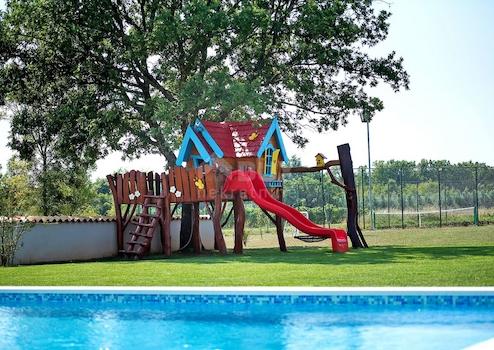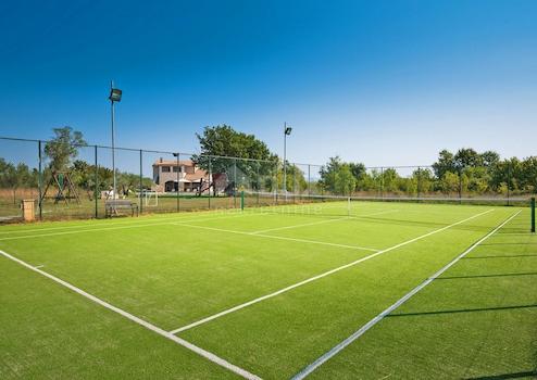 Inmitten von Olivenfeldern und Weinbergen in abgelegener Lage und getrennt vom Rest des Dorfes gelegen, stellt es eine ideale Gelegenheit für alle dar, die ihre eigene Ecke des Paradieses und eine Flucht aus dem Stadtleben suchen. Die Villa besteht aus insgesamt 280m2 Wohnfläche, die sich über zwei Etagen erstreckt. So befinden sich im Erdgeschoss neben einer kleineren Lobby ein Wohnzimmer, ein Esszimmer und eine modern ausgestattete Küche mit eigenem Vorratsraum in einem größeren „Open Space“-Bereich, der ganztägig von Tageslicht erhellt wird von der aus man durch eine große Glaswand auf eine überdachte Terrasse mit Sommerküche und Blick auf den umzäunten und gepflegten Garten gelangt. Das Wohnzimmer ist wie der Rest der Villa nach einem hohen Standard und einem modernen Ansatz eingerichtet, so dass der Raum attraktiv für das Auge, aber auch funktional und nutzbar ist. Alle modernen und derzeit bekanntesten Innendekorationstechniken wurden verwendet. Im Erdgeschoss befinden sich neben dem Wohnzimmer auch ein Gäste-WC, sowie zwei Schlafzimmer, die jeweils über ein eigenes Bad verfügen. Wichtig zu beachten ist, dass jedes Zimmer und Bad auf seine eigene Weise personalisiert ist und bei der Dekoration nicht auf das „Copy-Paste“-Prinzip zurückgegriffen wurde. Eine Innentreppe führt ins Obergeschoss, wo sich zwei weitere Schlafzimmer befinden, die jeweils über ein eigenes Badezimmer verfügen, sowie ein gemeinsamer Ausgang zur überdachten Terrasse (eigentlich Baladur), von der man einen direkten Blick auf endloses Grün und Wälder hat . Wie bei den Zimmern im Erdgeschoss wurde auch bei den Zimmern und Bädern im Obergeschoss das gleiche Gestaltungsprinzip angewandt, jedes ist auf seine Weise besonders und hat seine eigenen Details, die es unterscheiden. Besonders hervorzuheben sind: * die im Erdgeschoss gelegene Taverne mit separatem Eingang. Mit einem größeren Kamin und einem größeren Esstisch ist es eine ideale Option, um Freunde und Familie an Sommerabenden oder in kälteren Jahreszeiten zu unterhalten. * dann ein Spa-Bereich mit einer größeren Sauna, einem Whirlpool und einer speziellen Wärmebank zum Entspannen. Der Hof von 2800 m2 ist komplett eingezäunt und bietet Parkplätze für 6 Autos, von denen 4 überdacht sind. Neben einer Handvoll Grünflächen, die von einem automatischen Bewässerungssystem gepflegt werden, gibt es auch einen 50 m² großen Swimmingpool mit beheiztem Wasser und einen Strand. Darüber hinaus bietet Ihnen diese Villa zusätzliche Einrichtungen wie Tennis- und Basketballplätze sowie 7-Loch-Minigolf. Eine hervorragende Option als Familienhaus oder als touristische Investition, wenn man bedenkt, dass die Immobilie bereits vermietet ist. Zusätzliche Informationen: * Die Villa wird komplett ausgestattet verkauft * Sie verfügt auch über ein Alarm-, Video- und Sensorsystem * Ventilatorkonvektoren + Klimaanlagen wurden in den Räumen zum Heizen und Kühlen installiert * ES BESTEHT DIE MÖGLICHKEIT, EIN ZUSÄTZLICHES GEBÄUDE VON 2053 M2 ZU KAUFEN. LAND!