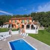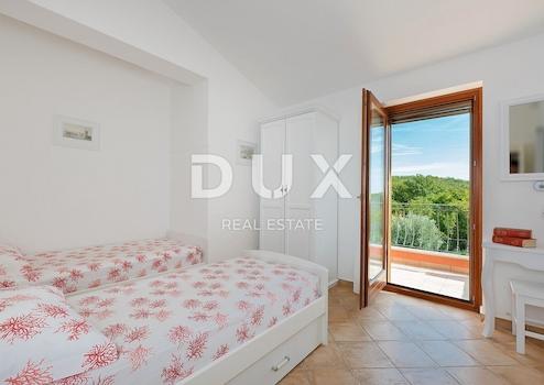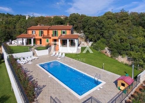 Unweit von Rabac und Labin steht eine Villa in begehrter Lage zum Verkauf. Die Fläche dieser gut gebauten Villa beträgt 159 m². Es erstreckt sich durch Erdgeschoss und Obergeschoss und ist vertikal in zwei Wohneinheiten von je 79 m² geteilt. Beide Wohneinheiten sind praktisch ausgestattet und möbliert. Im Erdgeschoss verfügt jede Wohneinheit über ein Wohnzimmer, ein Esszimmer und eine Küche mit Zugang zu einer überdachten Terrasse, ein Badezimmer und einen großzügigen Abstellraum, während sich in den Obergeschossen zwei Schlafzimmer, ein Badezimmer und eine Terrasse befinden. Den zentralen Platz auf dem umzäunten und gärtnerisch angelegten Garten mit Bewässerungssystem, von dem aus man einen Blick auf die Altstadt hat, nimmt ein 54 m² großer Swimmingpool mit Liegewiese ein. Diese Immobilie ist eine ideale Gelegenheit für das Familienleben oder als Investition zur Vermietung für touristische Zwecke.